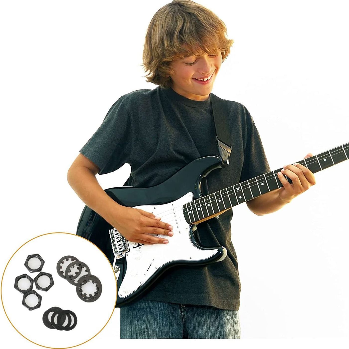 Description: A Gift For Guitarists: These Guitar Parts Are Cleverly Designed And Of High Quality To Provide Functional Spare Parts For Your Guitar To Make Your Guitar Sound Better, Clearer, And More Precise Color: Black Material: Metal The Package Includes: 4 X 3/8-32 Guitar Nuts, 4 X Flat Washers And 4 X M10 Internal Locking Washers, A Total Of 12 Pieces.