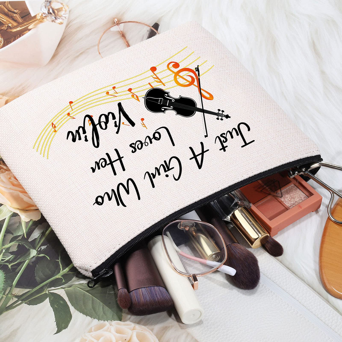 Meikiup Violin Gift Violin Lover Makeup Bag Violinist Gift Violin Performance Cosmetic Bag Who Loves Her Violin Travel Zipper Co