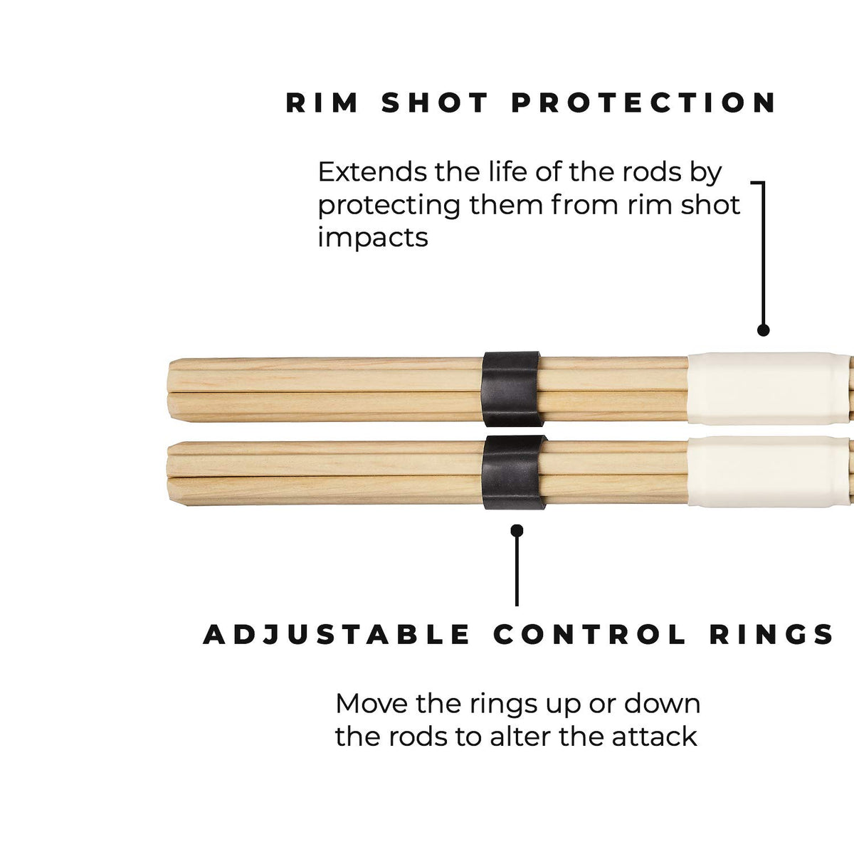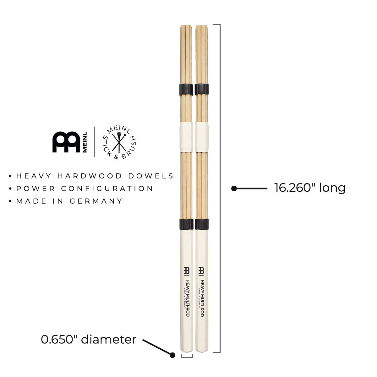 Thick Hardwood Dowels Arranged In A Hexagonal Multi-Rod Configuration Generate A Sharp & Bright Attack Thats Louder Than Standard Rods But Softer Than Drumsticks Hardwood Provides Clarity, Cut & Durability These Bundle Sticks Are Equipped With Adjustable Control Rings That Alter Their Attack On Virtually Any Type Of Percussion Instrument Moving The Control Rings Up Or Down The Rods Changes The Amount Of Spread Toward The End For A Fatter Sound, Move The Rings Back Toward Your Hands, Or Place Them Closer To The Tip For Sharper Effects The Smooth Grip Is Made To Feel Great In Your Hands While The Length Of It Accommodates A Number Of Hand Positions Great For Both Traditional And Matched Grip, As Well As Choking Up Or Down The Stick Sold In Pairs, The Sb207 Heavy Multi-Rod Hardwood Has A Length Of 16260 With A Diameter Of 0650 The Solid Hardwood Dowels Are Arranged In A Hexagonal Shape And Feature An Extra Center Wrap For A Tighter Sound And More Durability Multi-Functional And Extraordinarily Versatile, Our Multi-Rod Bundle Sticks Can Be Used On All Types Of Percussion Instruments From Cajon To Drum Kit Where Volume Control Is Needed Or The Music Calls For A Different Flavor The Tips Are Skewed (Or Sanded At An Angle) To Deliver A Well-Rounded Attack On All Surfaces These High-Quality Multi-Rod Bundle Sticks Are Made In Germany, Where They Are Constructed With Exceptional Craftsmanship For A Distinguished And Highly Durable Product