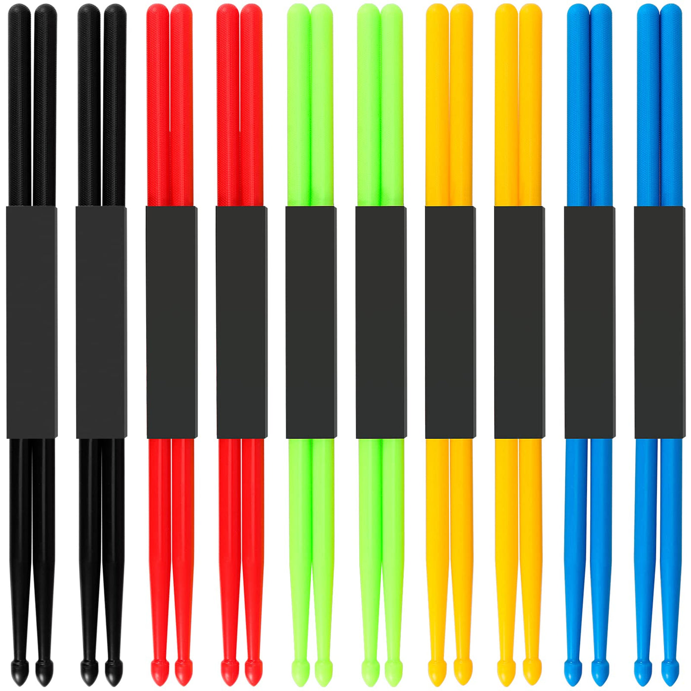 Mukchap 10 Pairs 5A Nylon Drum Sticks, Non Slip Plastic Exercise Drumsticks, Multi Color Drum Sticks For Instrument Percussion,
