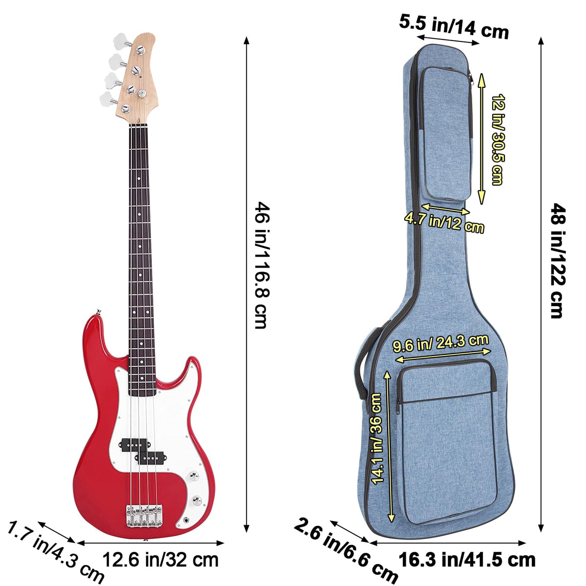 Muztop Stylish Electric Bass Guitar Shoulders Bag Suitable For Full Size 46 Inches Bass Guitars Lightweight Portable Electric Bass Gig Bag Made Of Wear-Resistant Material, With Sturdy Double Zippers, Has Interior Hook And Loop Tape To Secure Bass Neck In Place, Rubberized Base Protects Your Bass Guitar From Everyday Knocks, Bumps And Light-Travel Nicks, Scuffs And Scratches There Are 2 Breathable Adjustable Backpack Straps And A Comfortable Cushioned Side Handle For Convenient Carry During Home Storage, Gigs, School, Club, Daily Commute Or Travel Two Zippered Pockets Spacious Enough To Organizer A4 And Us Letter Size Of Music Books, Tablet, Smartphone, Wallet As Well As Small Stuff, Such As Guitar Strings, Pedals, Adapters, Cables, Tuners, Pencils And Other Musical Instruments Accessories And Essentials