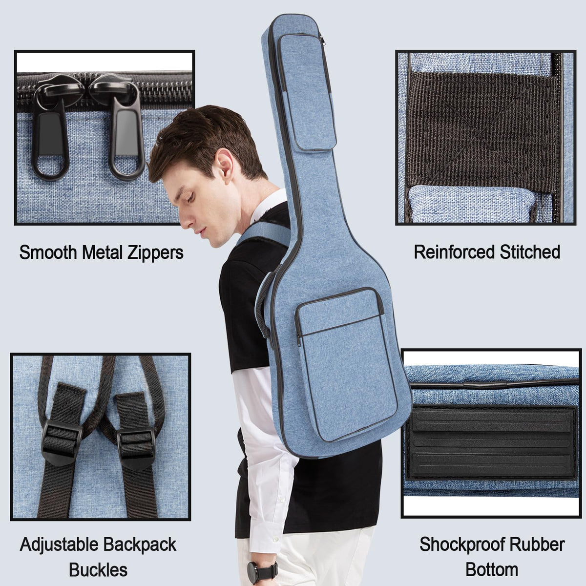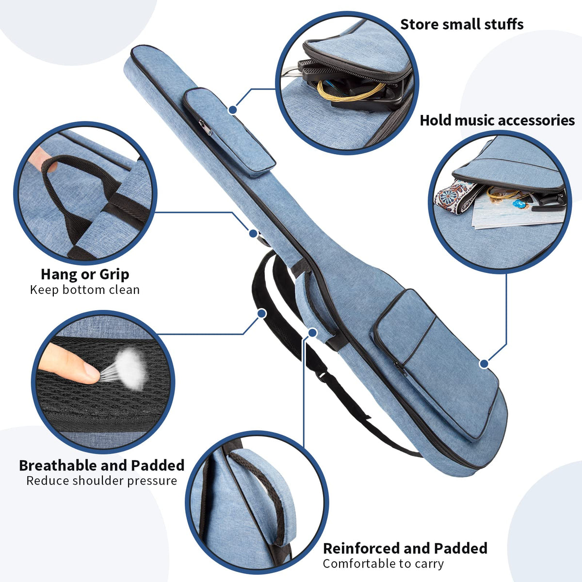 Muztop Bass Guitar Bag, 7Mm Padding Bass Guitar Gig Bag Padded Soft Electric Bass Guitar Case Backpack With Pockets, Blue
