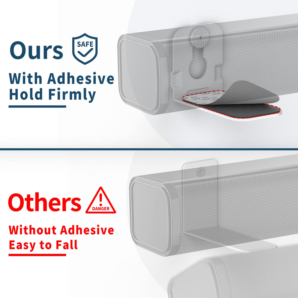 Q: Can I use the Notiela Soundbar Mount on drywall?A: No, the Notiela Soundbar Mount is designed for use on concrete or brick walls only. It is not suitable for drywall or wood studs, as these materials may not provide the necessary support for the weight of the soundbar.