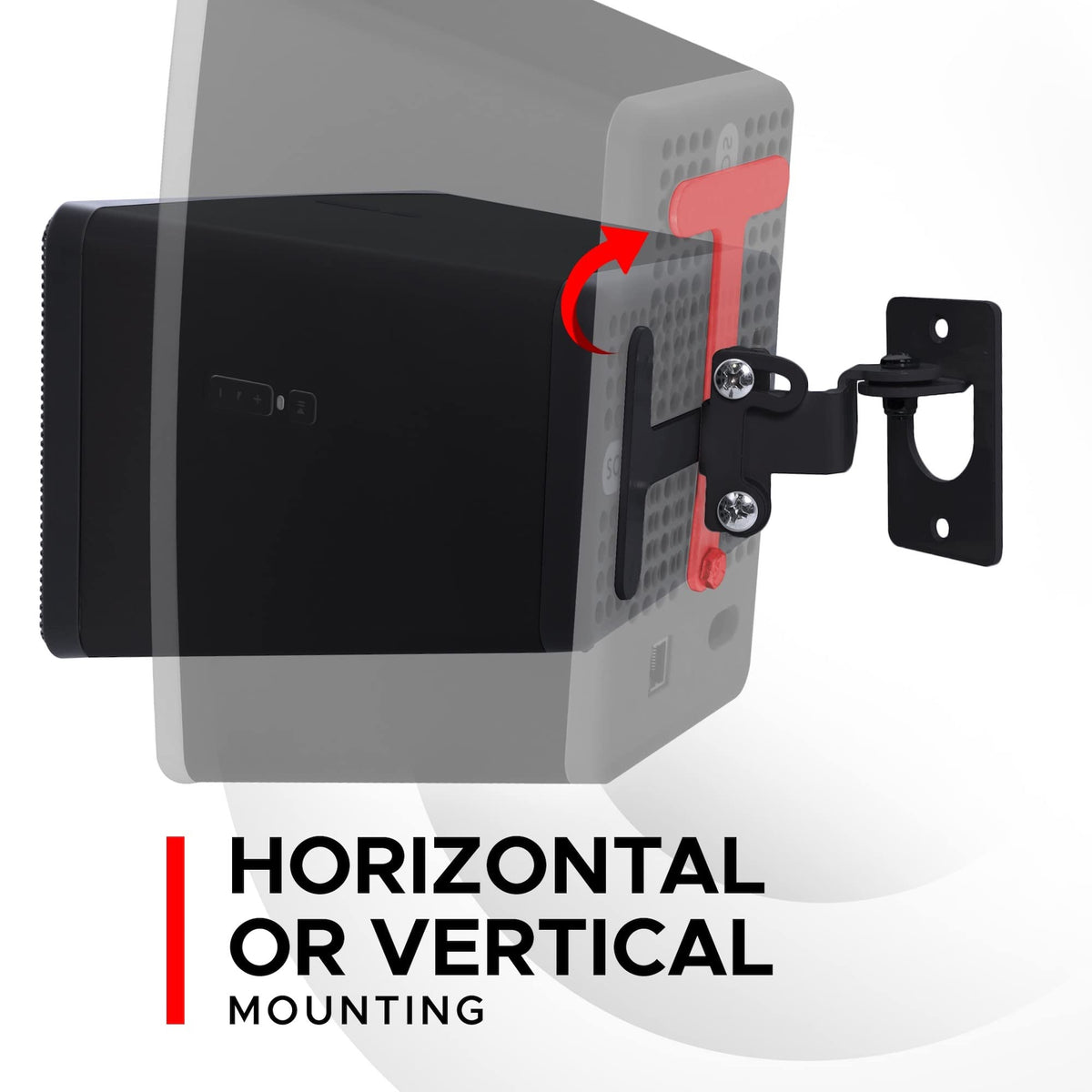 Play 3 Wall Mount Black Pair, Compatible With Sonos Play:3 Only, Twin Pack, Adjustable Swivel & Tilt Mechanism, 2 Mounting Brack