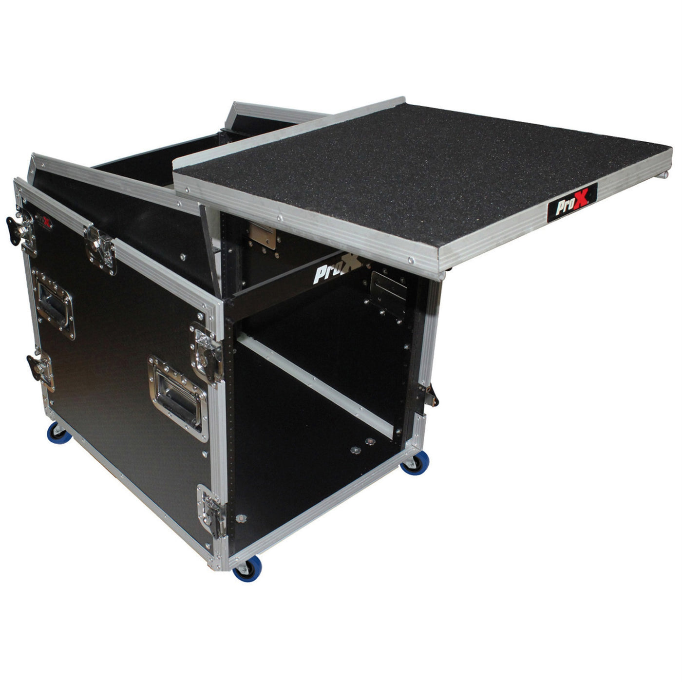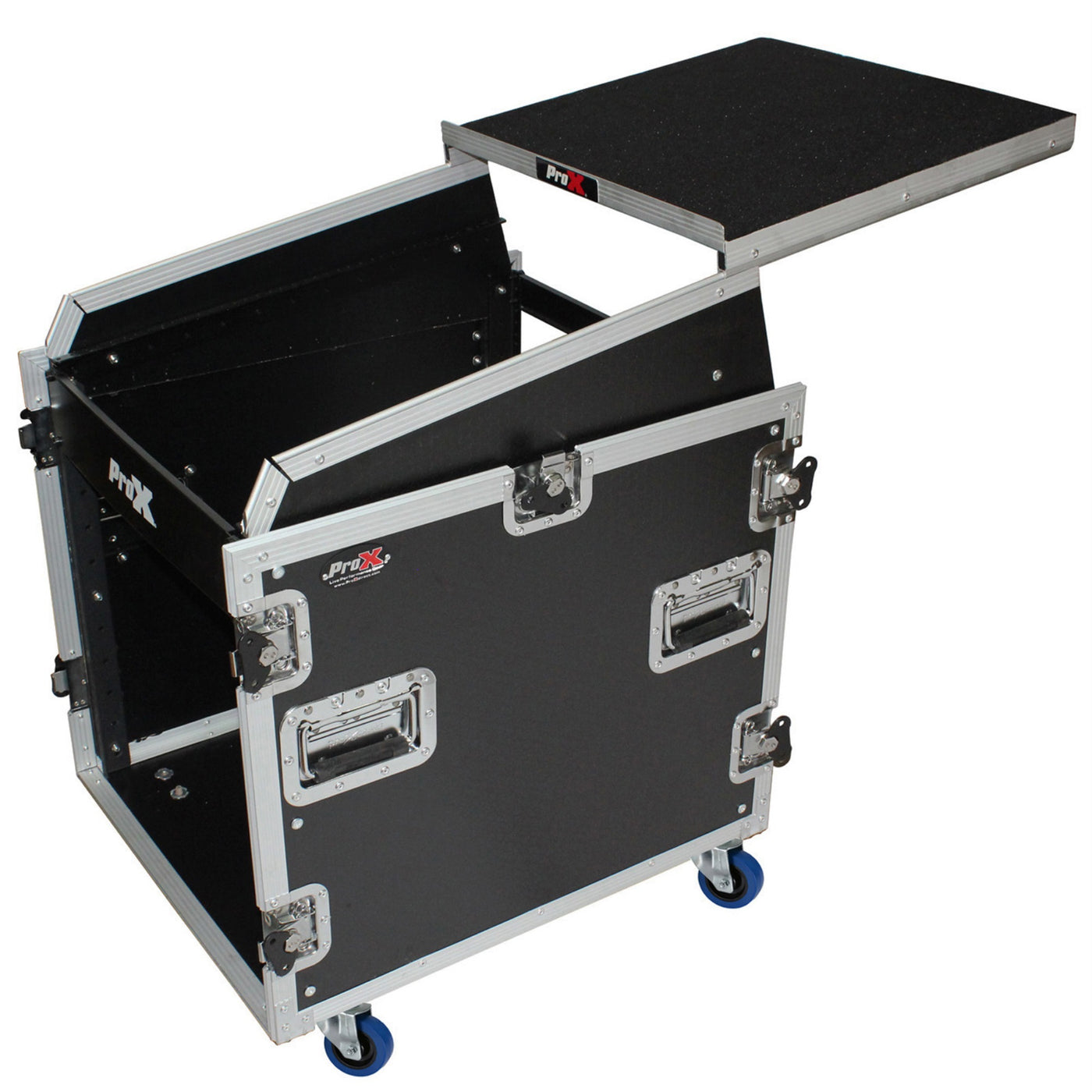 The Prox T-12Mrss13Ult12U Vertical Rack, 13U Slant Mixer Rack System Has All The Best Features You Are Looking For In A World-Class Flight Case: Strength, Durability, And Reliability With Flexible Options And Sizes For Different Applications.This Heavy-Duty Professional Combo Rack Is 24'' Deep And Features 12U Front Loading And 13U Top Loading Rails For Convenient Security For A Wide Variety Of Pro Dj Mixers, Amplifiers, Effects, And Any Other Standard 19'' Pro Audio/Dj Gear. Other Design Highlights Include A Large Swinging Rear Door (For Easy Wiring) With A Beveled Cable Hole For Permanent Or Semi-Permanent Installation. It Also Includes Two Recessed Handles On Either Side Of The Case And 4'' Locking Casters For Convenient Transportation And Mobility.This Case Also Includes A Sliding Glide Laptop Shelf For Digital Djs Who Need To Have All Their Gear Accessible At Once.This Prox Case Is Manufactured With The Honeycomb Laminated Surface Design. Made With The Super-Sleek Look Of Honeycomb Hexagon Grids On All Shell Surfaces, Which Gives The Cases An Almost Alien Look! Also As Opposed To Regular Laminated Plywood Cases From Other Manufacturers, The Prox Honeycomb Design Helps Prevent Minor To Mild Scratches. The Honeycomb Digital Line Design Was Inspired By The Design Of New York City Street Manhole Covers Which Are Made To Handle Rough And Tough Everyday Punishment.