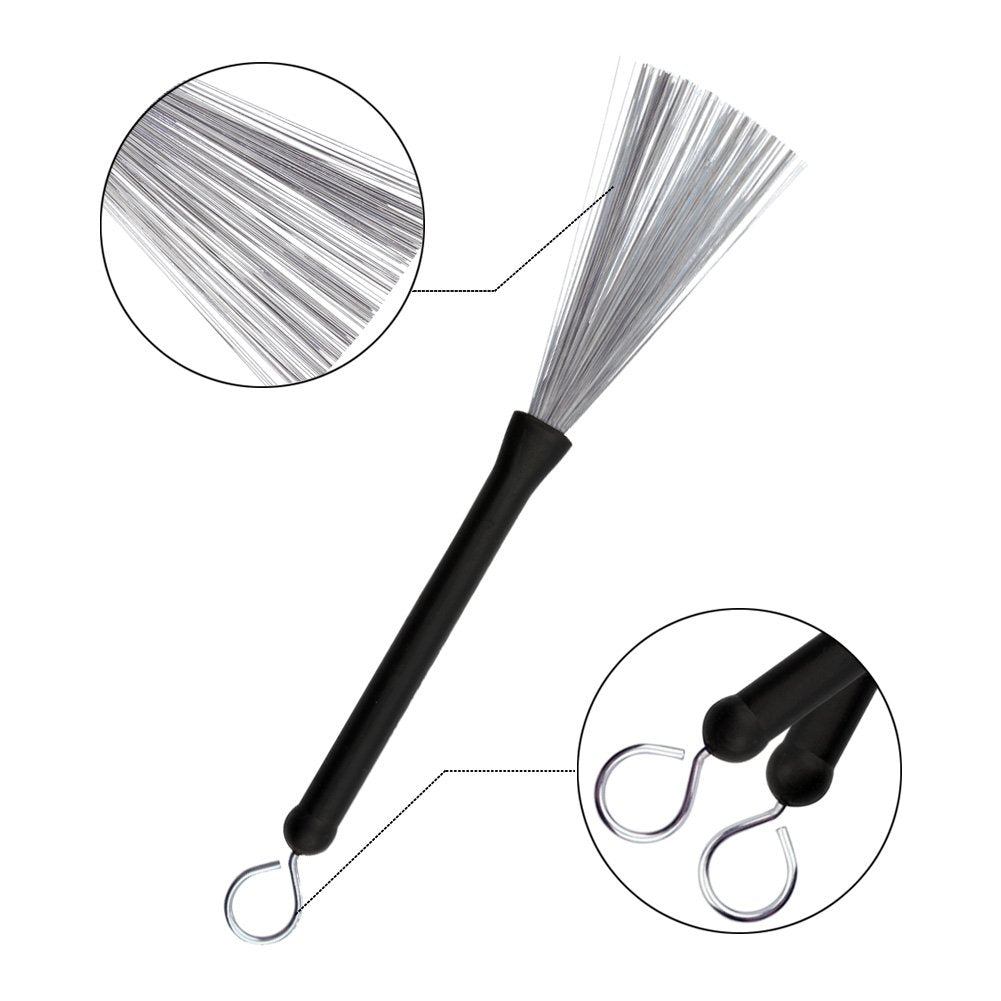 Tbrand Drum Sticks 1 Pair 5A Maple Wood Drum Sticks,1 Pair Retractable Drum Wire Brushes And 1 Pair Rods Drum Brushes Set For Ki