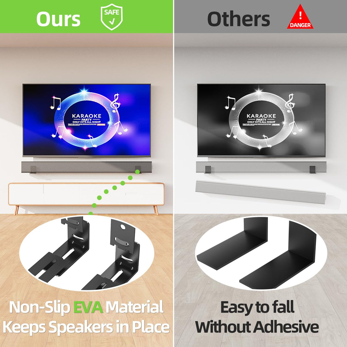 Universal Sound Bar &Amp; Speaker Wall Mount Bracket Why Choose Our Speaker Wall Mount Bracket? - Versatile Compatibility: Fits Most Speakers Up To 3.5 Inches Wide. - Durable Construction: Made From High-Quality Metal, Supports Up To 30 Lbs. - Space Efficiency: Keeps Your Space Tidy And Organized. - Improved Audio Experience: Enhances Sound Quality For A Better Listening Experience. - Hassle-Free Installation: Quick Setup With All Necessary Hardware Included. Features Of Our Soundbar Mount: - Universal Compatibility: Fits Any Soundbar, Including Popular Brands Like Lg, Samsung, Vizio, Bose, And More, Ensuring A Perfect Fit For Your Home Audio Setup. - Flexible Installation: Can Be Mounted On Concrete Wall Or Wood Studs, Providing Versatility In Placement And Making It Easy To Achieve The Ideal Sound Experience In Any Room. - Secure And Low Profile: Holds Up To 20 Lbs Securely While Maintaining A Sleek, Low-Profile Design That Doesnt Obstruct Your Speaker, Ensuring Both Safety And Aesthetics. - Easy Setup: Includes All Necessary Hardware And A Clear, User-Friendly Manual Written With Care, Making The Installation Process Quick And Painless, Even For Diy Beginners. Transform Your Audio Experience And Keep Your Space Looking Sleek With Our Universal Soundbar Wall Mount Bracket. Order Now And Enjoy The Perfect Blend Of Functionality And Style!