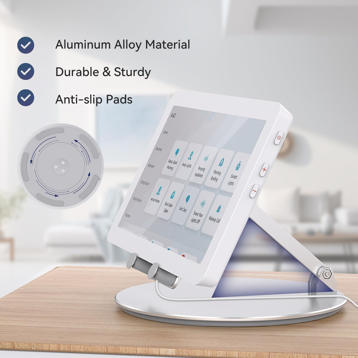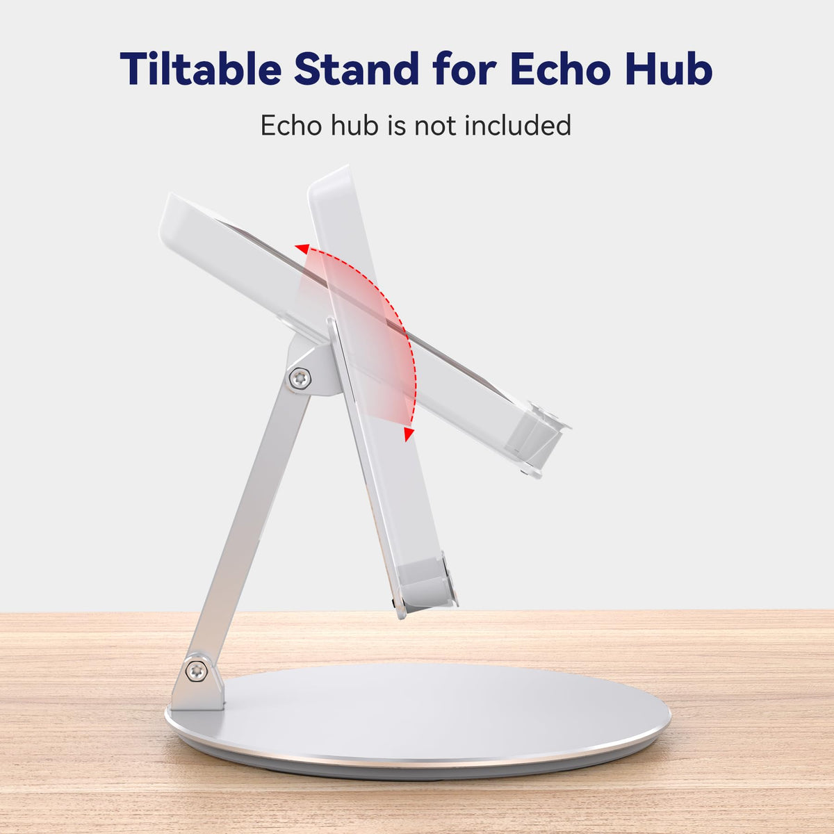 Rotataion: The Design Of This Echo Hub Stand Is Very User-Friendly, Especially Its Rotatable Function At The Bottom, Which Provides Great Convenience For Users.Tiltable: The Stand For Alexa Hub Can Be Tilted 80, Making That You Can Always Enjoy An Optimal Viewing Experience, Tailored To Your Personal Comfort And Needs.Elevated: Aluminum Stand For Echo Hub Can Be Elevated, Enabling You To Customize It To Your Preferred Visual Experience.Easy Installation: The Echo Hub Smart Home Stand Offers An Extremely User-Friendly Installation Process. This Simplified Method Not Only Saves Users' Time But Also Significantly Lowers The Installation Difficulty, Making It Accessible Even For Those With No Prior Installation Experience.Light And Handy: The Echo Hub Holder Stand Has A Convenient Folding Mechanism That Allows It To Be Compactly Stored When Not In Use.Steady: Even During The Process Of Rotating The Base, The Alexa Hub Stand Holder Maintains Stable Support, Ensuring That The Echo Hub Remains Steady.