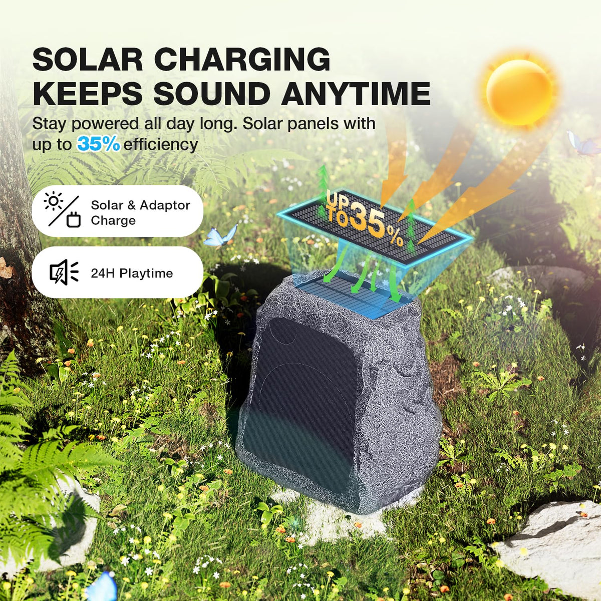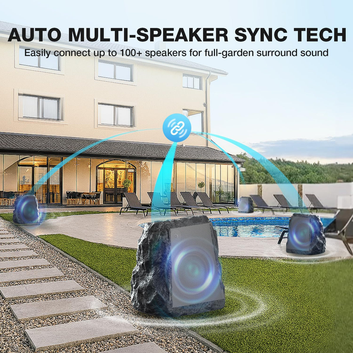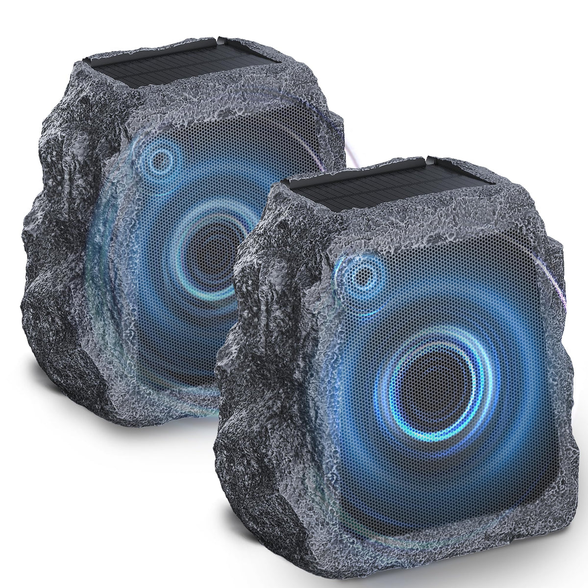 Blitzrock Wireless Outdoor Rock Speakers, 80W 2-Driver Outdoor Speaker Solar Powered, Easy Pairing, Auto-Sync For 100+ Speakers,
