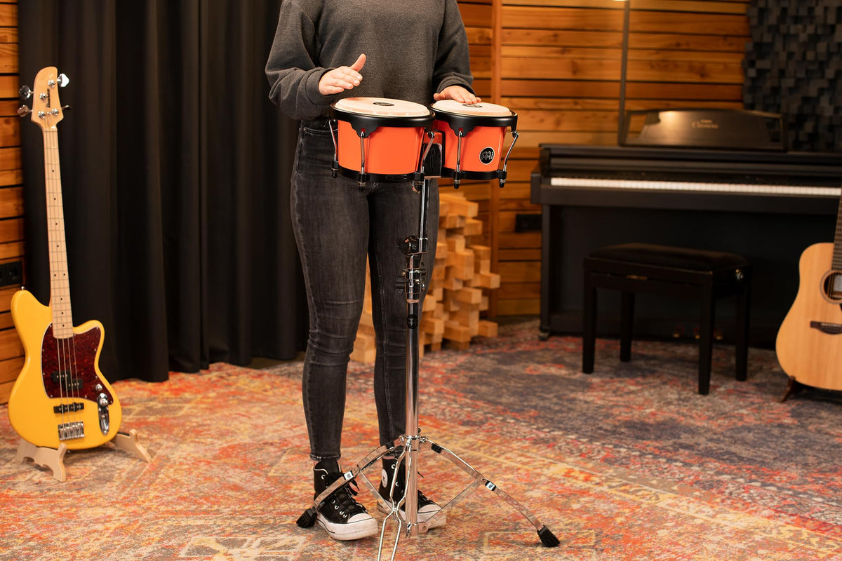 Bongo Drum Set With Durable Synthetic All-Weather Shells, Journey Series - Not Made In China - Natural Buffalo Skin Heads, 2-Yea