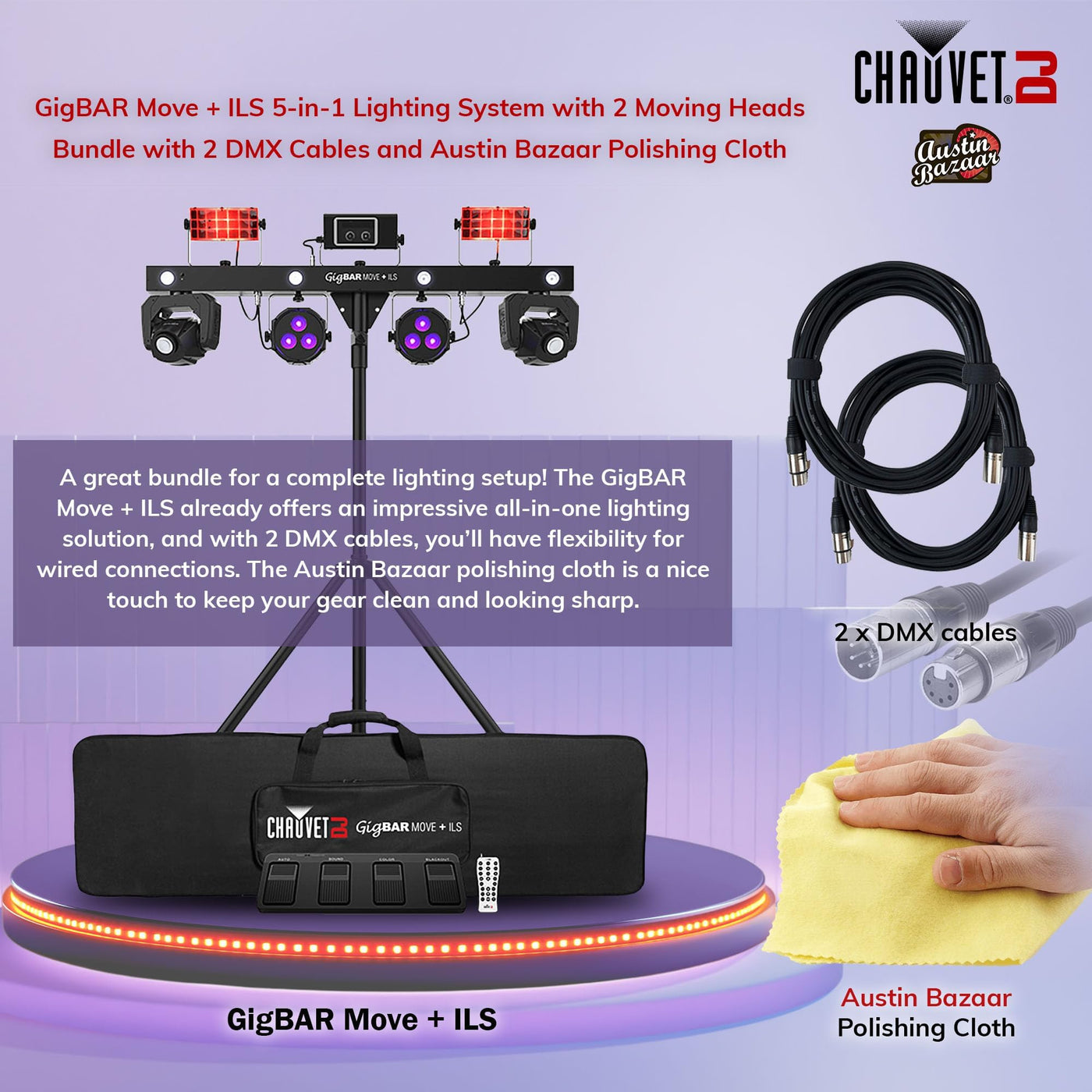 Chauvet Dj Gigbar Move + Ils 5-In-1 Lighting System With 2 Moving Heads Bundle With 2 Dmx Cables And Austin Bazaar Polishing Clo
