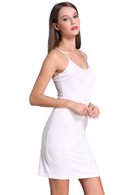 Coreal Full Slip For Women Under Dress Adjustable Spaghetti Strap Knee Length Slips Undergarment Nightwear White