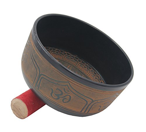 Dharmaobjects Tibetan Meditation Om Ganesh Singing Bowl Mallet Mat Cushion Set (8 Inches)