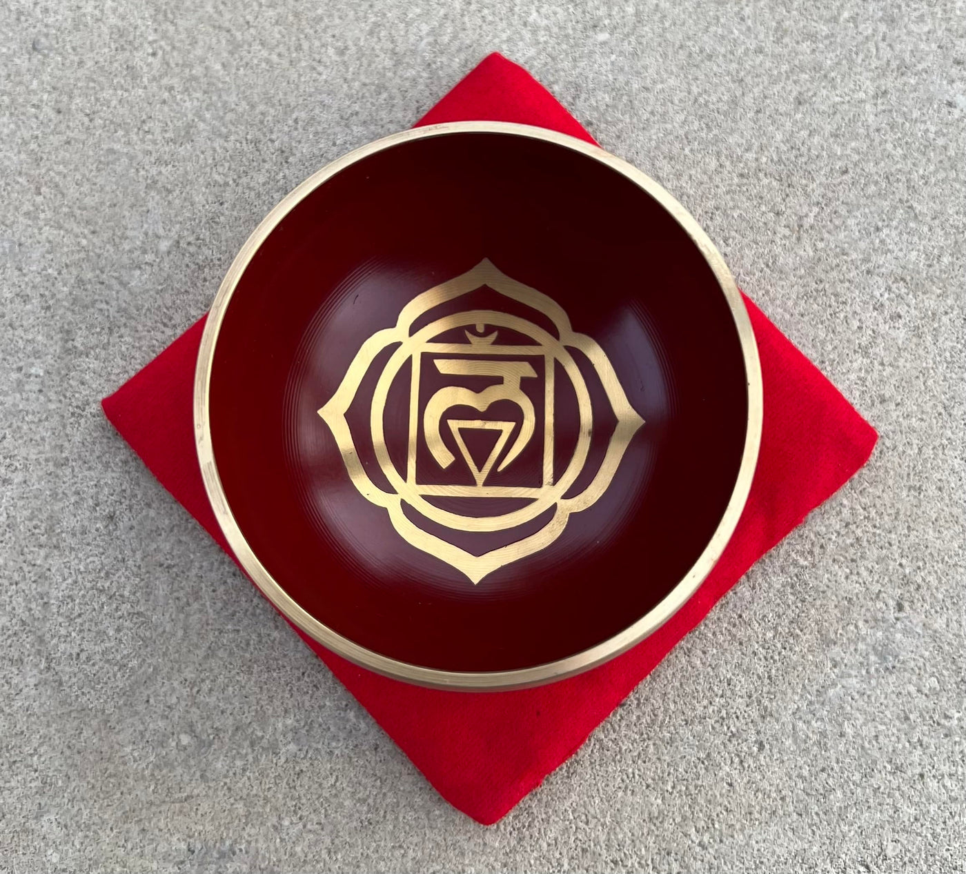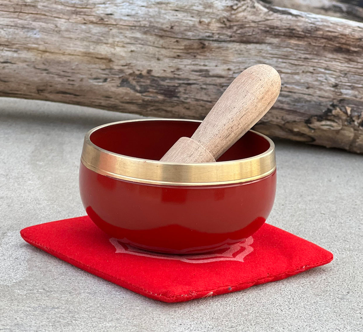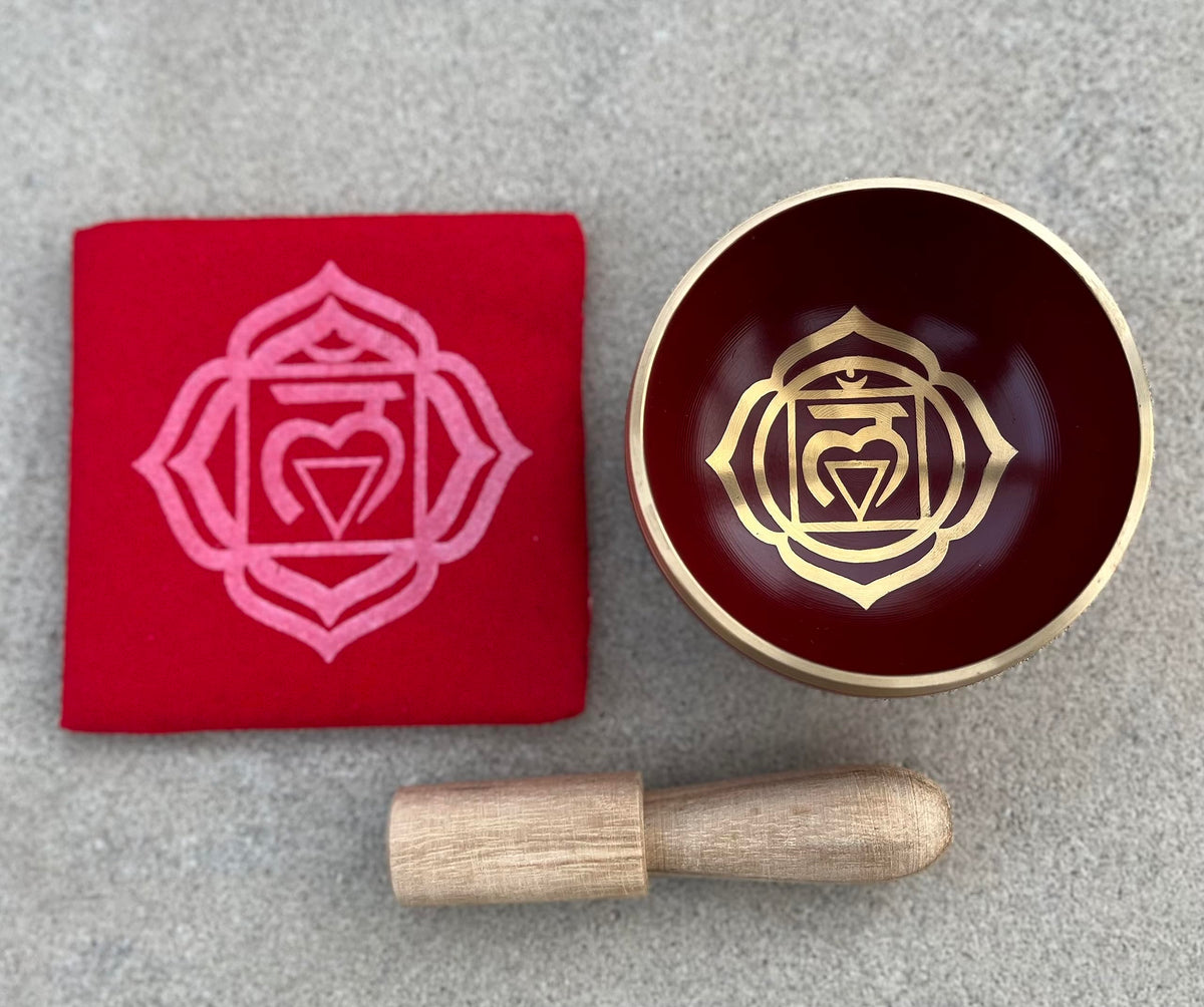 Dharmaobjects Tibetan Root Chakra Premium Palm Size Singing Bowl Gift Box Set