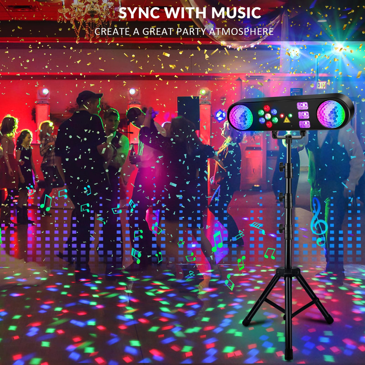 Transform Any Space Into A Vibrant Dance Floor With This All-In-One Dj Light With Stand. Featuring Five Dazzling Effects, Disco Ball, Uv Wash, Strobe, Colorful Par, And Pattern Beam, This 21 X 10 X 5 Compact Light Bar Brings Professional-Grade Lighting To Your Parties, Gigs, Or Events. The Included Tripod Stand Extends Up To 62 Inches, Making It A Perfect Stage Light With Stand For Flexible Setups. Whether Youre Hosting A Birthday Bash Or Running A Dj Booth, This Dj Party Light Bar Adds High-Impact, Music-Synced Lighting To Every Moment.