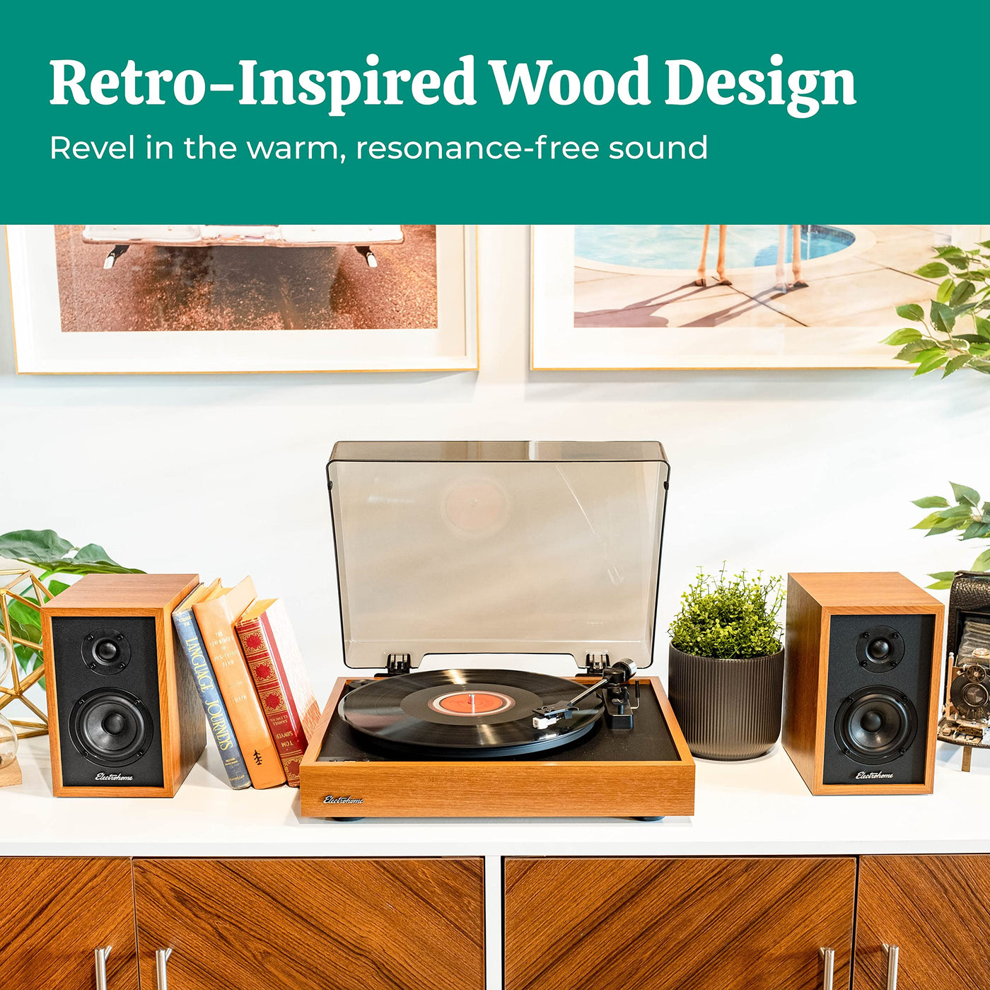 The Electrohome Berkeley Powered Bookshelf Speakers Offer Excellent Performance And A Smooth Connection To Any Audio Source So You Can Focus On The Music. These Powered Speakers Will Improve Any Music Space And Feature Both A Classic Look With Contemporary Features.Impressive Performancethe Compact Cabinet And Speaker Arrangement Work Together To Offer A Natural, Balanced Sound Clear Of Distortion, Offering Precise Music With Clear Vocals And Satisfying Soundstange. Enjoy Music The Way It Was Meant To Be Heard.Device Compatibilityconnect Your Turntable, Tv, Computer Through Wired Connections Or Pair Your Mobile Device For Wireless Bluetooth Music Streaming. Easily Switch Between Devices By Clicking The Control Knob, And The Led Light Lets You Know Which Input Is Currently Chosen.Quality Componentsbuilt For Performance, The 3-Inch Drivers & 1-Inch Tweeters Collaborate To Provide An Acoustically Balanced Sound Profile, Allowing You To Enjoy The Speakers Warm And Detailed Playback. A Low Distortion 30-Watt Class D Amplifier Provides Clarity And Quality Audio Play.Classic Retro Cabinet Designfeaturing A Stunning Hand-Crafted Cabinet That Is Specially Made With A Rear Port Design To Give A Warm And Free-Of-Resonance Sound. Rear-Facing Controls Guarantee That The Speakers Look As Nice As They Sound.Simplified Setupeasily Listen To Audio From Multiple Devices Through The Rca, 3.5Mm Aux, And Bluetooth Inputs. Simply Connect The Speakers And Power To Enjoy Your Music Without Needing Extra Equipment.