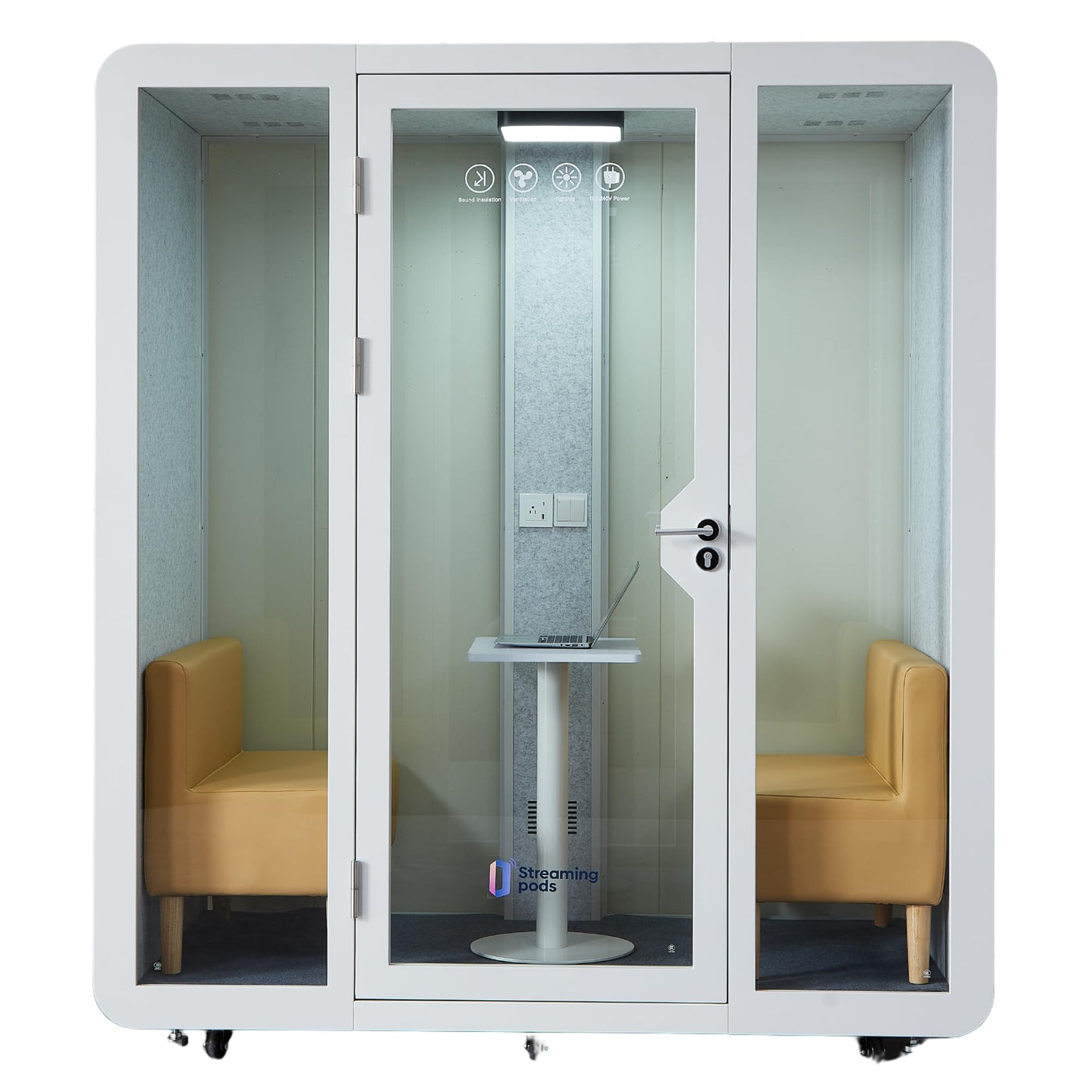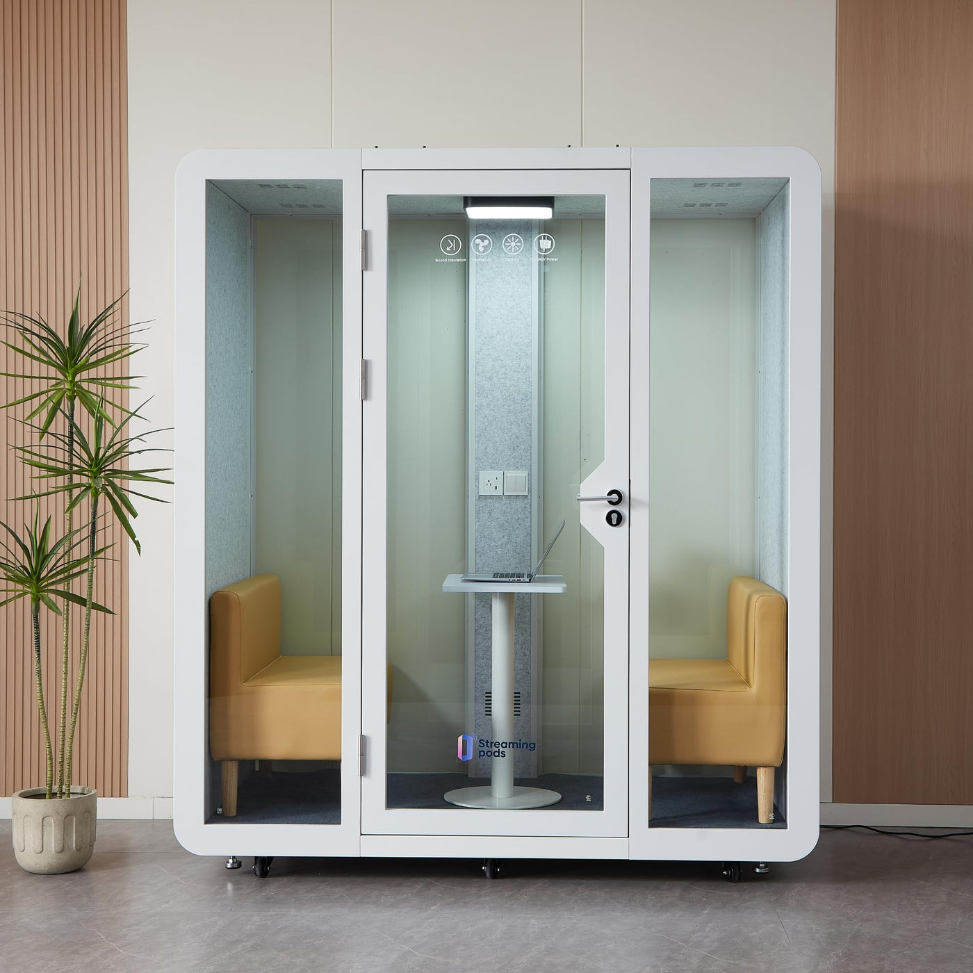 Gearonic Mobile Office Pod Booth, Standard Sound Proof Office Pod For 2 People, Sound Pod Booth With Mobile Roller, Led Lighting