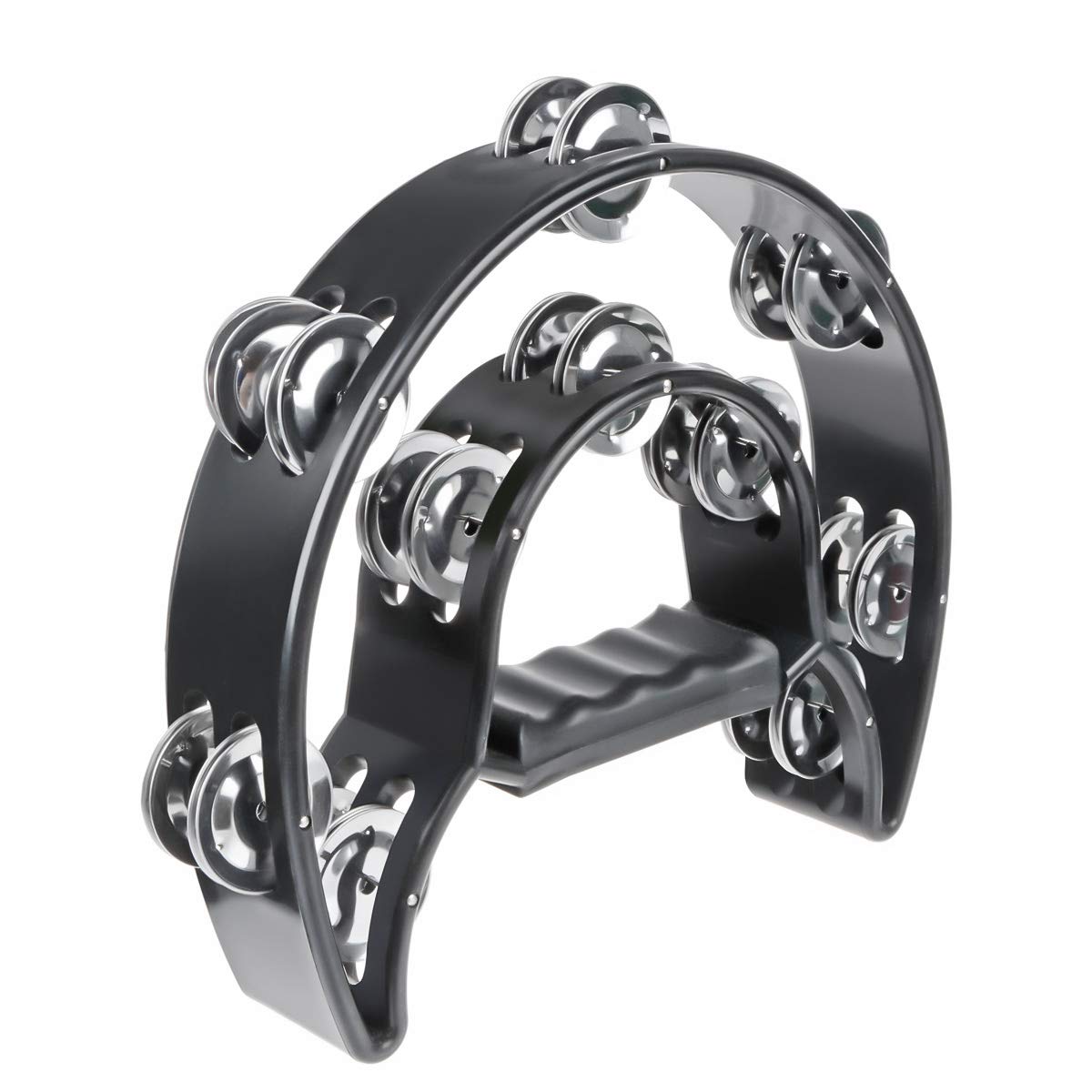 Half Moon Musical Tambourine Double Row Metal Jingles Hand Held Percussion Drum Multicolor For Ktv Party With Ergonomic Handle G