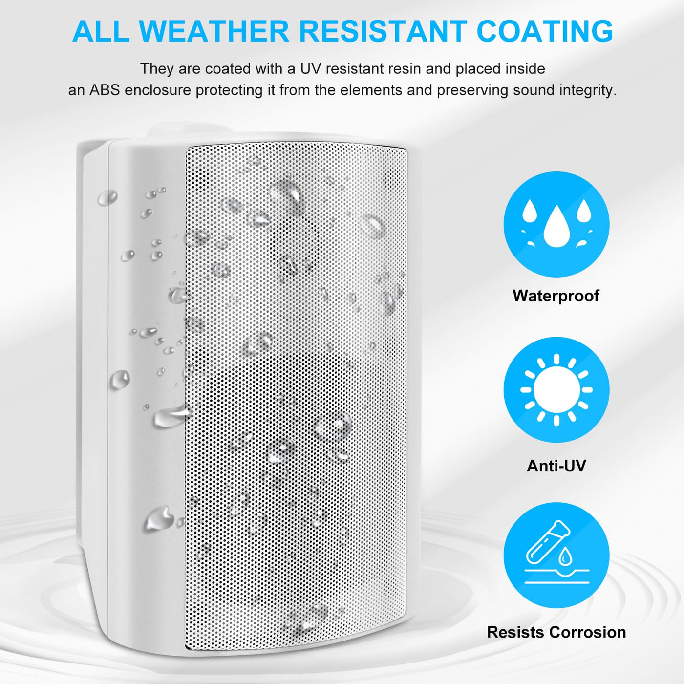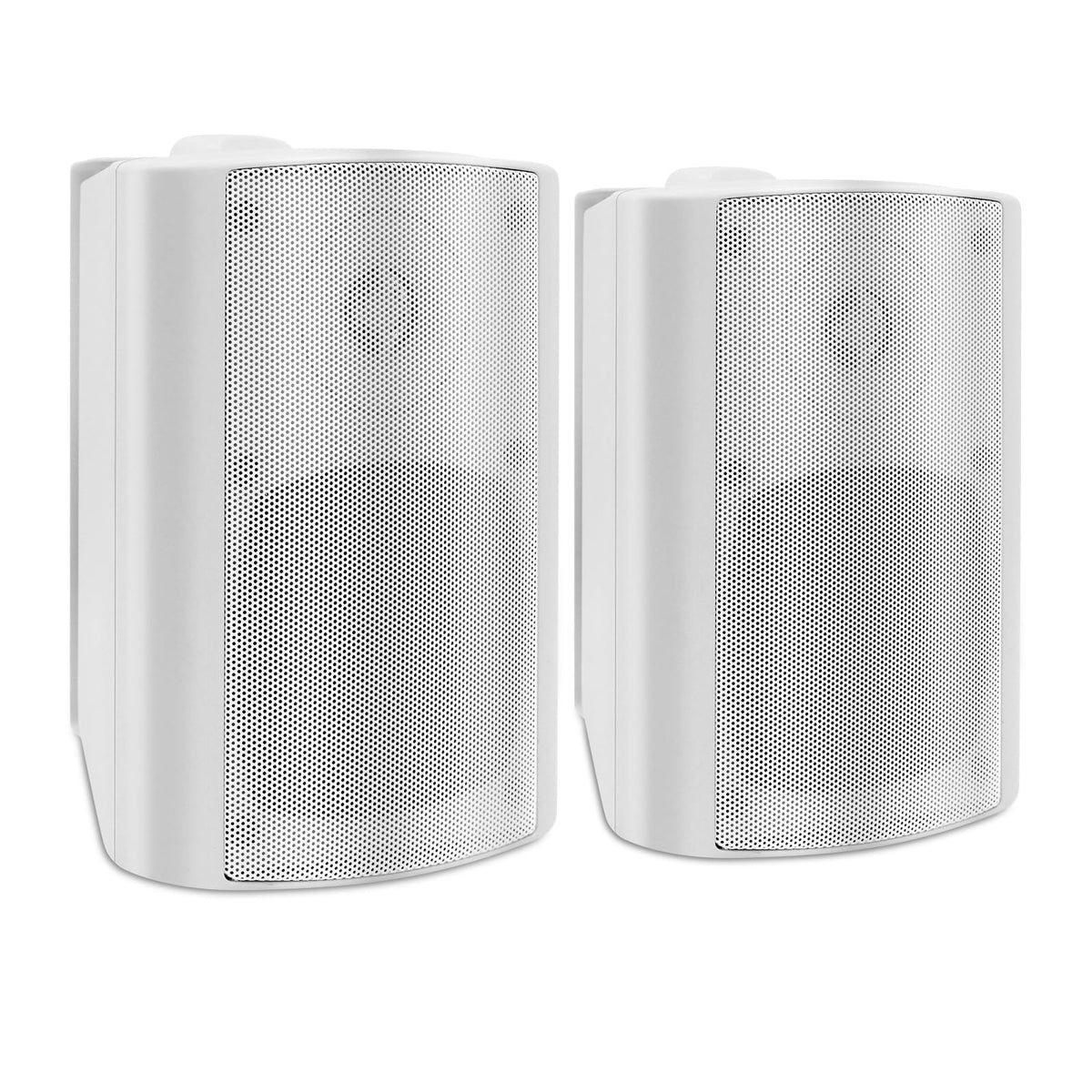 ?Full Range Quality Sound?Achieve Crisp Sounds And Fill Your Area With Clean Highs, While Feeling The Deep Bass Response From The Articulated Sound Enclosure. | ?Versitle Swivel Brackets ?Making Sure You Were Able To Place Your Wired Outdoor Speakers In Your Most Desired Location We Added Easy Install Swivel Brackets That Allow Up To A 120 Degree Range Of Motion While The Front Facial Can Rotate Up To 90 Degrees. Ensuring Easy Placement And Focused Sound Quality Where You Want It. | ?Product Dimensions (L X W X H)?8.62''(219Mm) (L) X 5.67''(144Mm) (W) X6.62''(159Mm) (H).Installs Easily On Walls | ?Designed To Live Indoors & Outdoors?Great Outdoor Indoor Speakers For Your Patio, Garage, Basement Or In Your Living Room. The Weatherproof Cabinet With Fashionable Design And Is Made Of Durable Abs Material. The Internal Cabinet Walls Are Thick With Rigid Bracing To Prevent Unwanted Cabinet Resonances, Allowing For Clean Clear Sound At All Levels. | ?What You Get?2-Speakers, 2-Mount Brackets. 2-Speaker Wires(16.4Feet/5Meters)