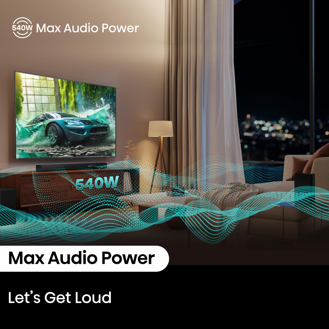 Experience Immersive Audio Quality With The Hisense Soundbar Hs5100. This High-Performance Soundbar Is Equipped With An 8-Speaker Surround Sound System That Delivers A Whopping 540W Total Output Power, Transforming Your Living Room Into A Cinematic Auditorium.