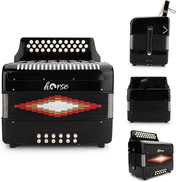 Horse 31 Key Accordion,12 Bass 3-Row G/C/F Diatonic Accordions Instruments For Adults With Thicked Suitcase And Straps, 31 Keys Button Acorde N Acordeones Para Adultos For Beginners To Professionals