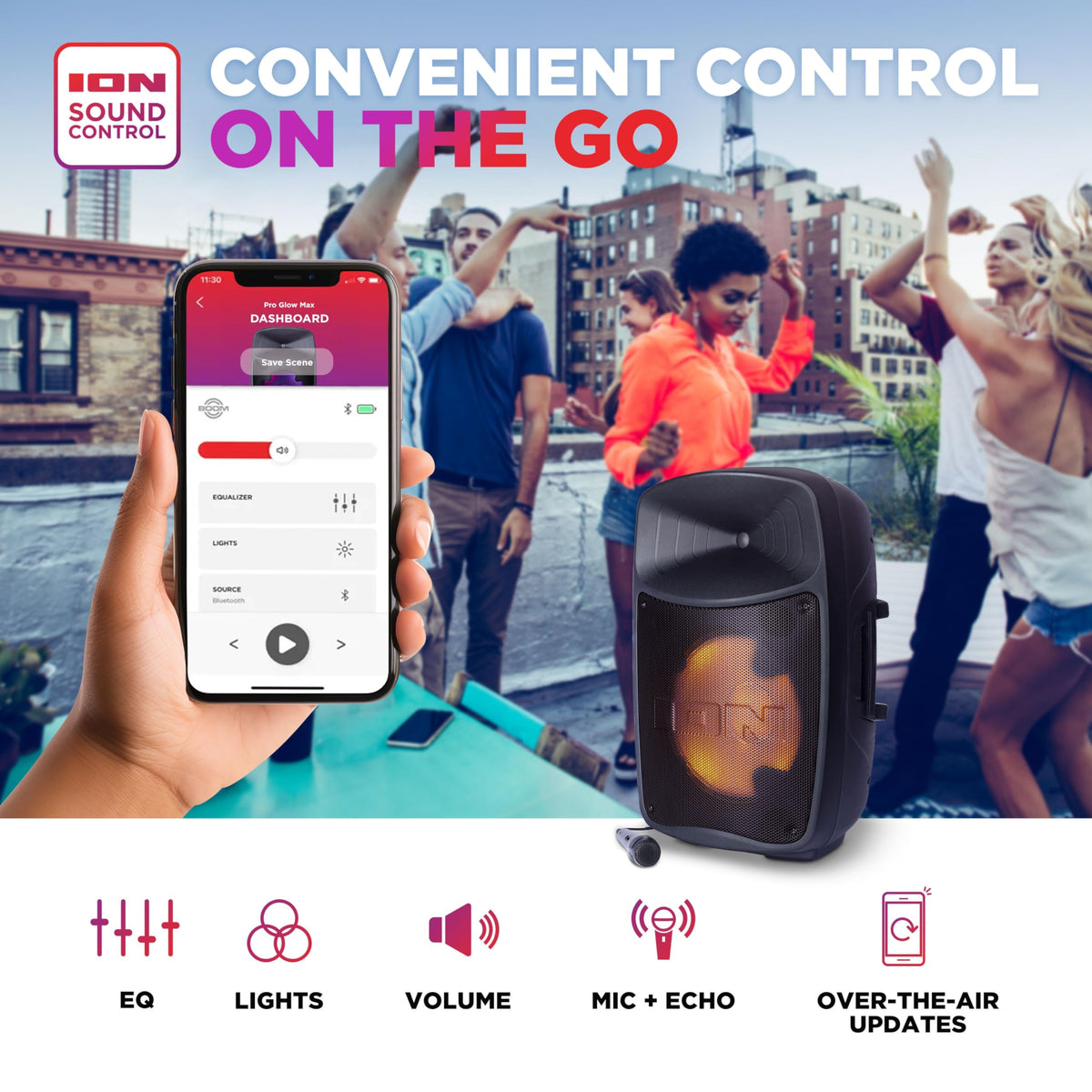 Ion Pro Glow Ultra - High-Power Bluetooth Pa Speaker System With Lights, Karaoke Microphone, Usb Playback, Usb Charge Port, Aux