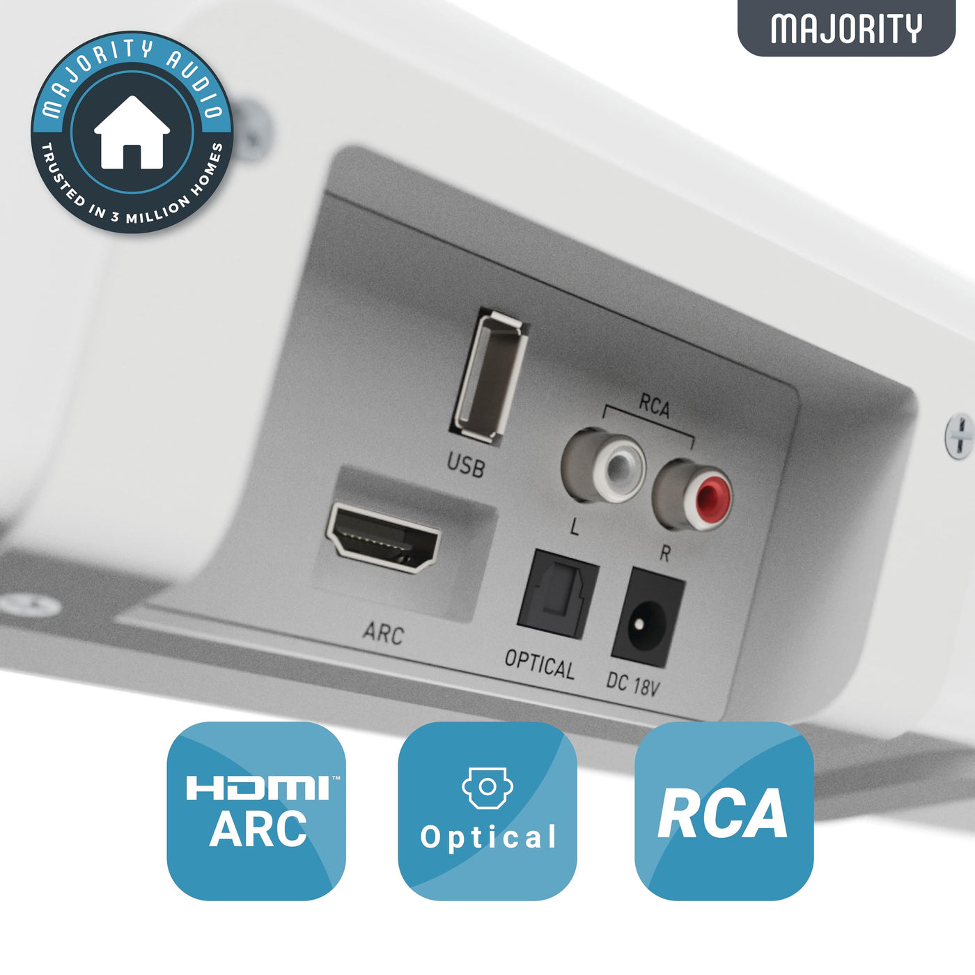 Introducing The Ultimate Audio Solution For Your Home Entertainment Needs - The Majority Teton 2.1 Bluetooth Soundbar. Elevate Your Audio Experience With This Sleek And Powerful 120-Watt Soundbar, Where Style Meets Substance To Deliver Superior Sound Quality. With Its Built-In Subwoofer, The Teton Ensures Deep, Rich Bass That Brings Your Favorite Movies, Music, And Games To Life Like Never Before. Whether You'Re Hosting A Party Or Enjoying A Quiet Night In, The Teton Offers Versatile Connectivity Options Including Bluetooth, Usb, Aux-In, And Optical-In, Allowing You To Stream Audio From Any Device With Ease. Whether You'Re Looking For The Best Home Audio Solution Or Simply Want To Enhance Your In-Home Entertainment Experience, The Majority Teton 2.1 Bluetooth Soundbar Is The Perfect Choice. Don'T Settle For Mediocre Sound - Upgrade To The Teton And Transform The Way You Listen To Audio At Home. Get Yours Today And Get Ready To Experience Big Bass And Big Sound Like Never Before!