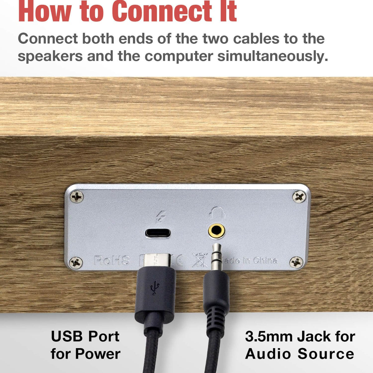 Mica Computer Speakers, Wired Computer Sound Bar, Wooden Mini Soundbar, Usb Powered Pc Speakers 3.5Mm Aux & Pc Input (Yellow)