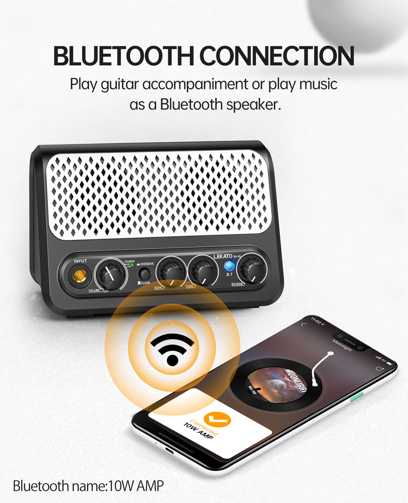 Mini Guitar Amp,Lekato 10W Portable Electric Guitar Amplifier With Clean & Overdrive Channel,Reverb,Bluetooth Small Guitar Amp F