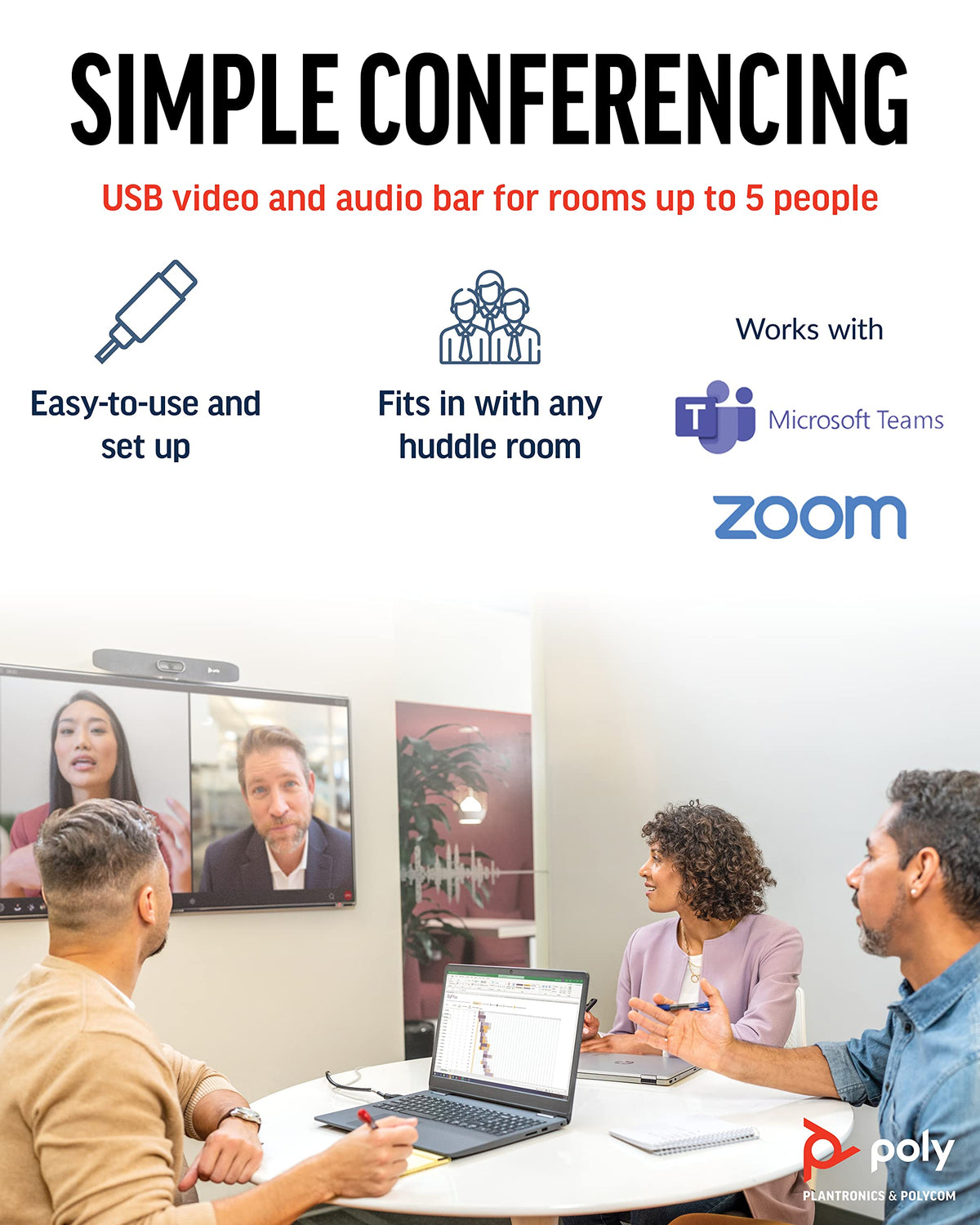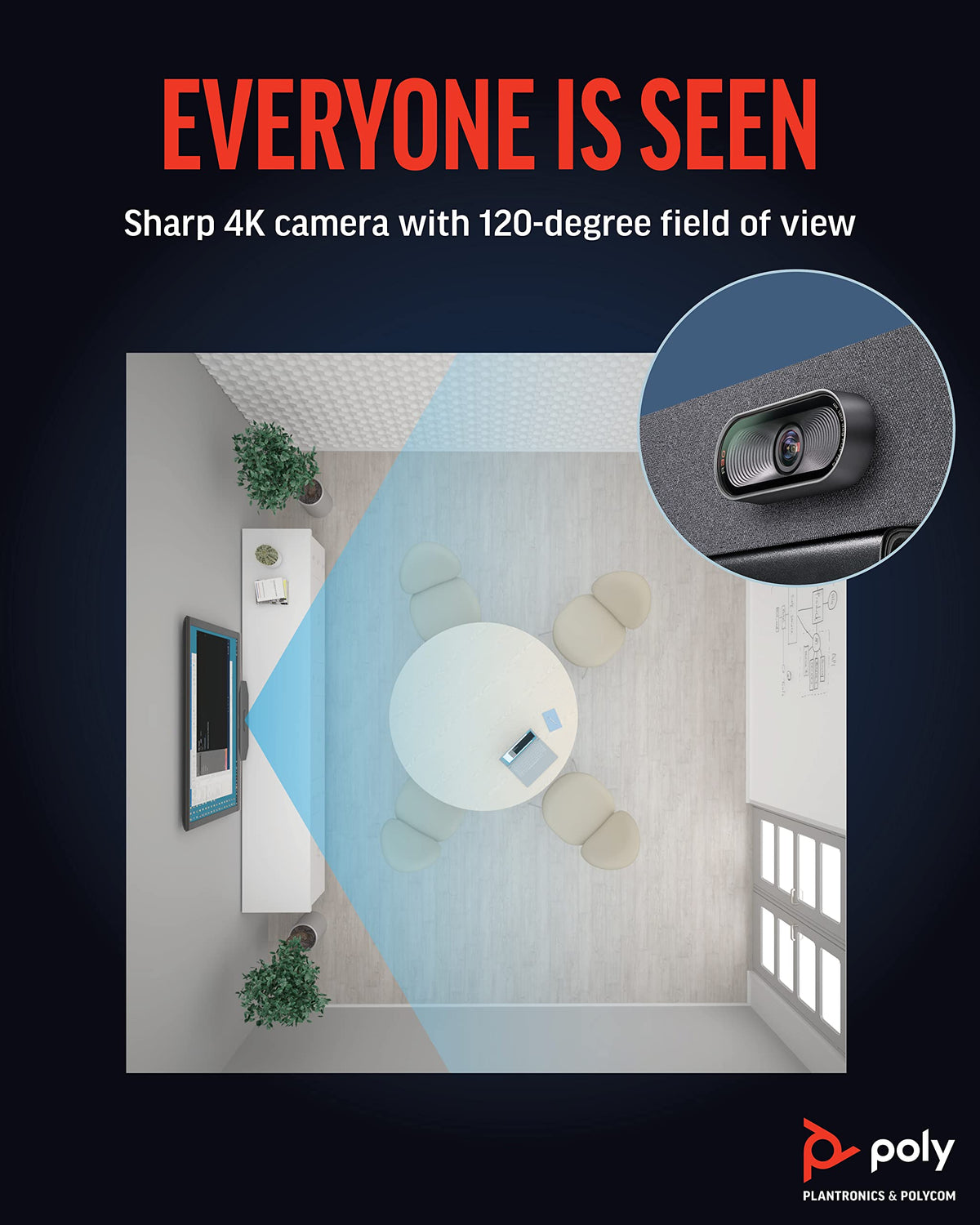 Poly (Plantronics + Polycom) Studio R30 4K Video Conference System Camera, Mic, And Speaker Bar For Small Rooms Presenter Trac