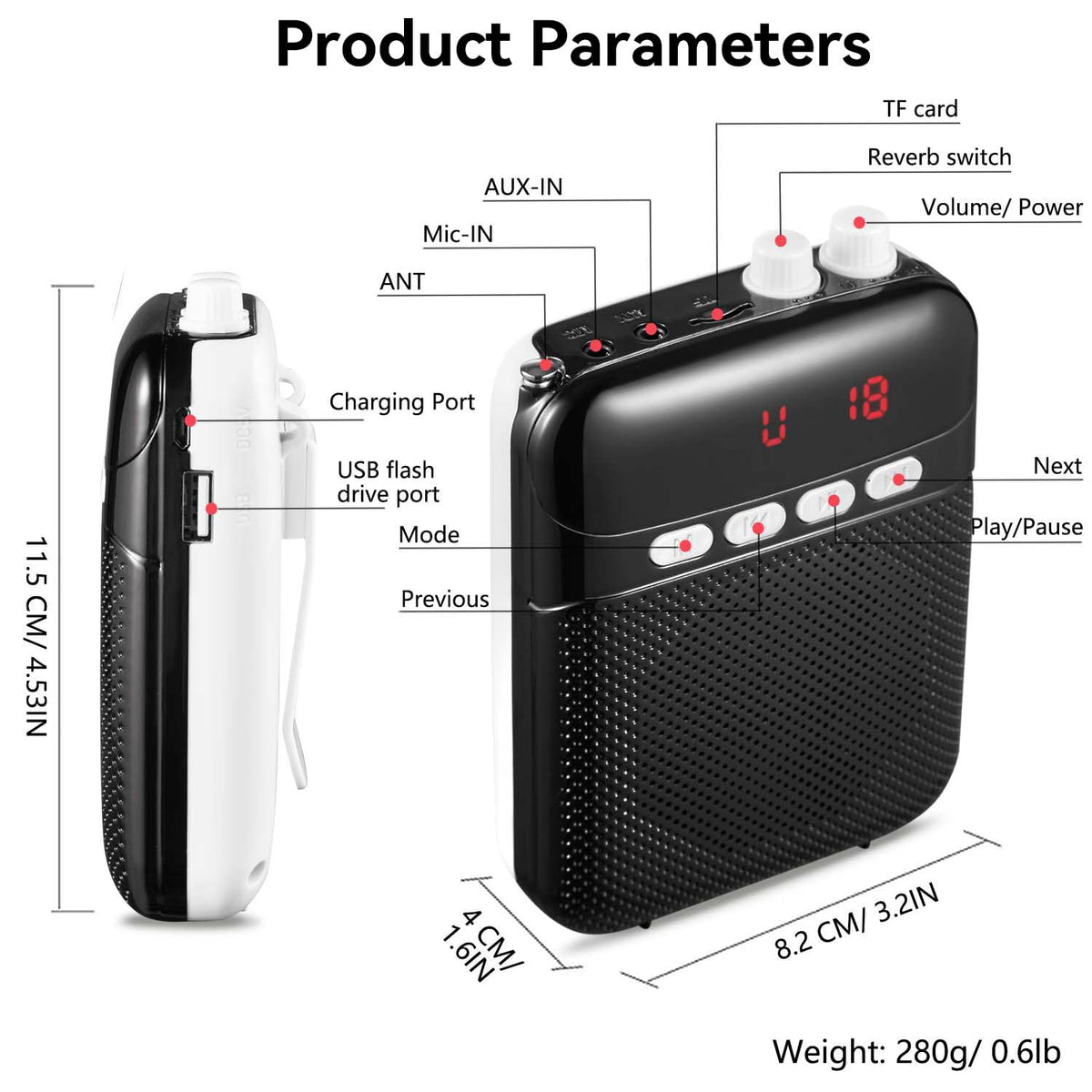 Kinizuxi Portable Voice Amplifier With Microphone-Amplifys Your Voice And Saves Your Throat!&Nbsp;Specifications:Output Power: Up To 10Wcharging Time:&Nbsp;4Hoursamplify Time: Up To 20 Hoursmp3 Music Playtime: Up To&Nbsp;13Hoursbattery Capacity: 2400Mah&Nbsp;Lithium Batteriescharging Voltage: Usb/Dc5V1Ajack Size: 3.5Mmpowerful Sound:Our Personal Microphone For Teachers&Nbsp;Adopts Of Piano Lacquer With A Smooth Surface. This Microphone Amplifier&Nbsp;Has Up To 10W Output Crystal Sound And No Noise Is Loud Enough To Cover A Large Room Of 200-500 People.&Nbsp;Multifuctional Use:It Is Not Only A Personal Microphone For Teachers, But Also A Music Player. You Can Enjoy Music From A Tf Card And Usb Flash Disk. It Can Even Play Music While You Input The Microphone, Then The Microphone Amplifier&Nbsp;Becomes A Mini Karaoke System.Whats More,This Amplificador De Voz&Nbsp;Has A Telescopic Antenna And Dsp Digital Radio, You Can Listen To Your Favorite Radio Program Anytime, Anywhere.&Nbsp;2400Mah Rechargeable Voice Amplifier:Built-In A 2400Mah Large Lithium Battery Allows The Microphone For Classroom&Nbsp;To Take 4Hours To Fully Charge, But Plays Up To 20 Hours Of Amplify Time And Up To 13 Hours Of Music Playtime.&Nbsp;With Head Speaker And Adjustable Waistband:You Can Easily Adjust The Distance Between The Microphone For Teachers&Nbsp;And Your Mouth With Its Flexible Gooseneck. This Classroom Speakers For Teachers&Nbsp;Comes With An Adjustable Band That You Can Use It To Tie Around Your Waist Or Hang On Your Neck.&Nbsp;Package Included:Voice Amplifier*13.5Mm Headset Microphone*1Usb Charging Cable*1User Manual*1Waistband*1&Nbsp;