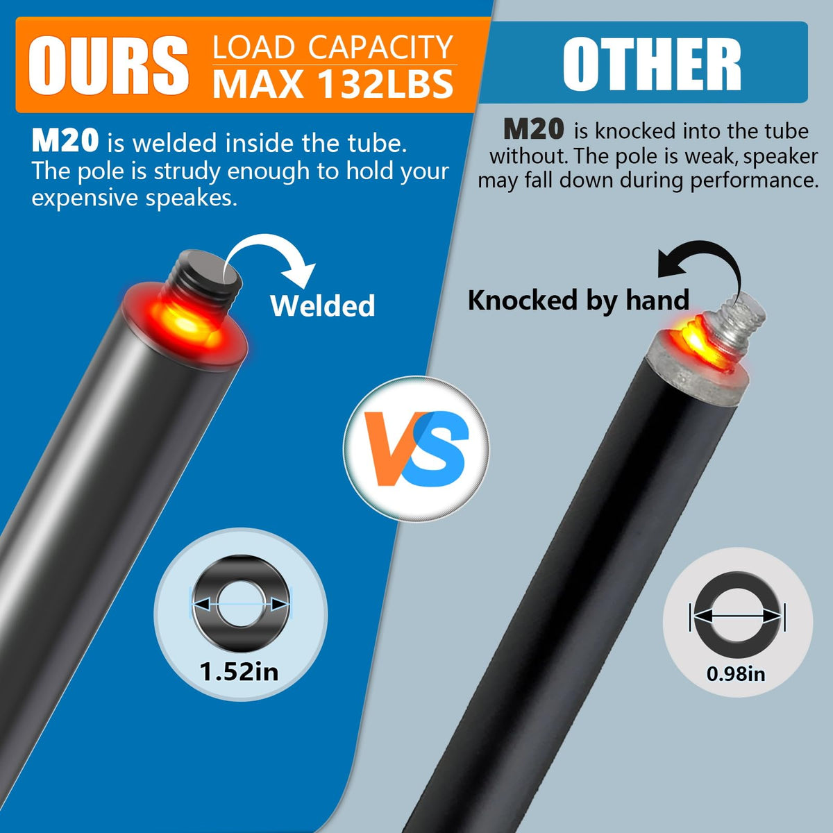 Qoope 2 In 1 Speaker Pole Mount For Subwoofer - Height Adjustable, M20 Threaded & 35Mm Adapter, 132 Lb Load Capacity