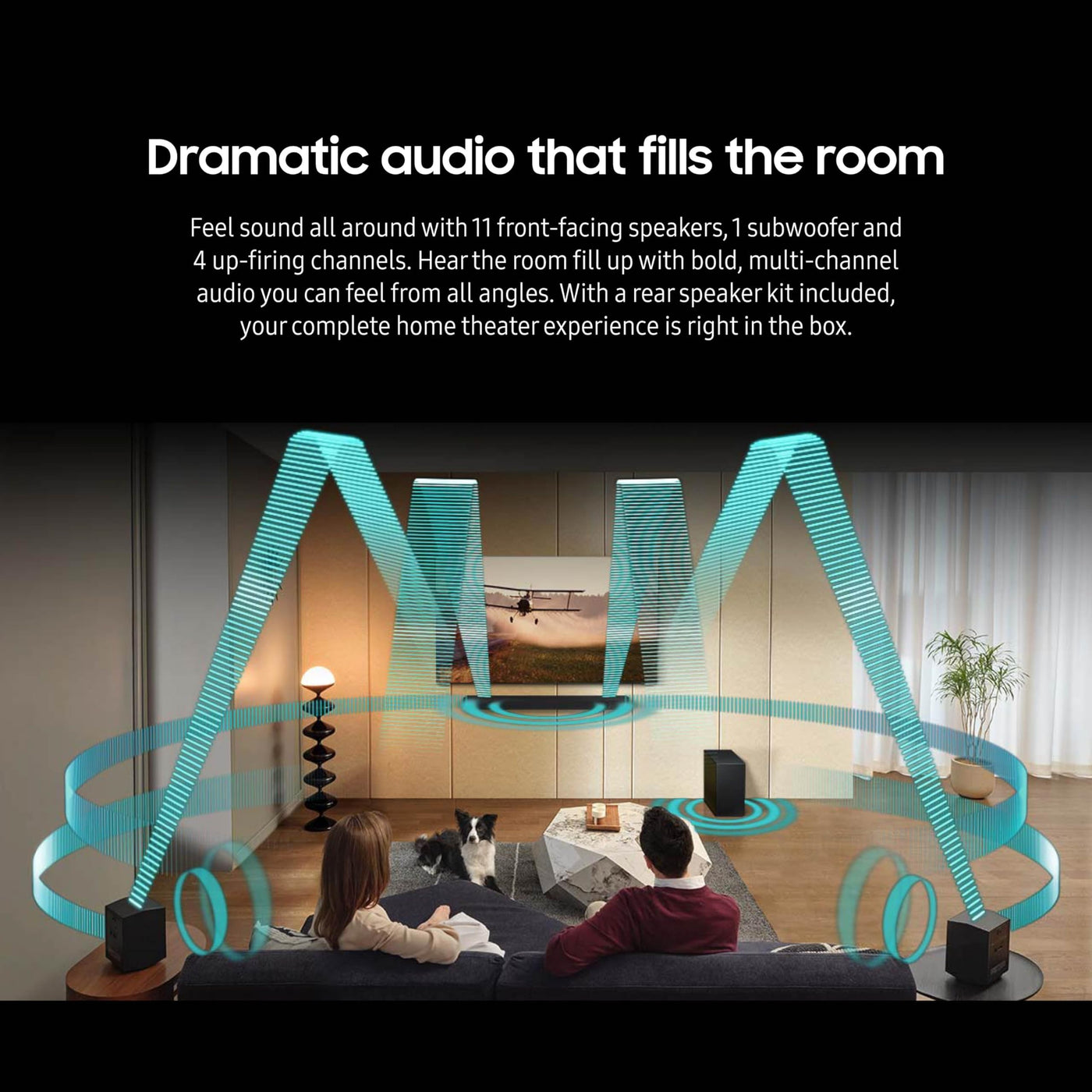 Bundle Includes:(1) - Samsung Q990D 11.1.4 Soundbar Speaker System(1) - Appletv 64Gb 4K&Nbsp; Q990Experience Our Greatest Of All Time-Level Audio Synchronized With Your Tv&Rsquo;S Speakers And Customized To Your Living Space. With Intelligently Tuned, 11.1.4 Ch. True Dolby Atmos Sound, The Q990D Stands Above The Rest. Q-Symphony Requires A Compatible 2020-2024 Samsung Tv. &Bull; Pair A Samsung Tv With A Samsung Soundbar To Unlock A New Level Of Powerful Audio. Experience Content Like Never Before With Q-Symphony.&Bull; Feel Sound All Around With 11 Front-Facing Speakers, 1 Subwoofer And 4 Up-Firing Channels.&Bull; Skip The Hdmi Cables And Enjoy Truly Elevated Audio With Wireless Dolby Atmos.&Bull; The Up/Side-Firing Rear Speakers Use Your Ceiling And Walls To Create Dense Layers Of All-Around Sound.Appletvapple&Nbsp;Tv 4K (3Rd Generation) Brings The Best Of Tv Together With Your Favorite Apple Devices And Services &Mdash; Including The New Facetime Experience On Tv.Footnote&Nbsp;With 4K Dolby Vision, Hdr10+, And Dolby Atmos, It Delivers A Truly Cinematic Experience To Your Screen.Footnote