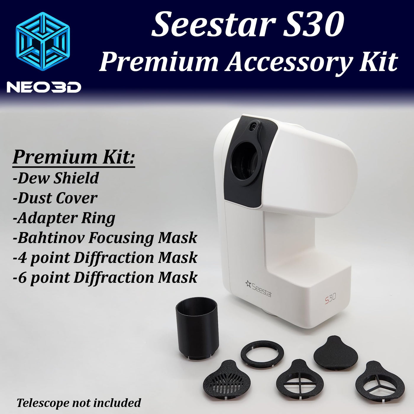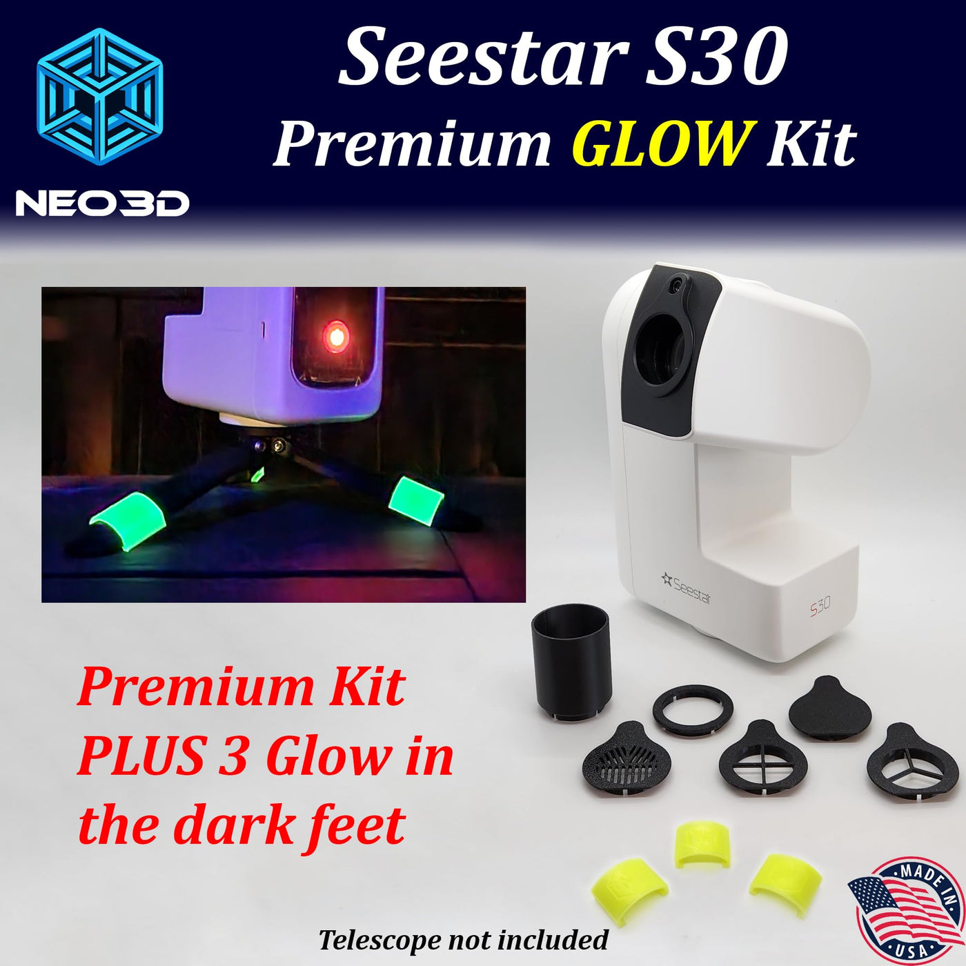 Seestar S30 Dew Shield Premium Glow Accessory Kit, Dew Shield, Dust Cap, Glow In The Dark Feet, Bahtinov Focus Mask, Diffraction
