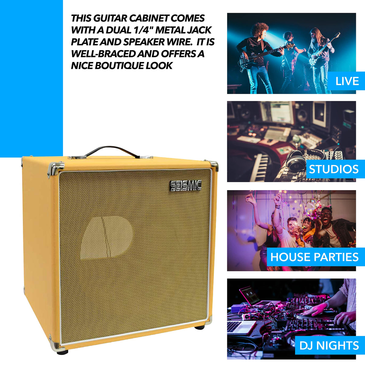 Model Number: Luke-1X12Tr Orange Tolex Cover/Wheat Color Cloth Grill) | Birch Plywood - 12 Empty Guitar Speaker Cabinet. Guitar Speakers Are Not Included | Removable Grill For Front Speaker Loading - Grill Pops Off And On With Ease | Plenty Of Wire, Strap Handle On Top, Metal Flush Corners, Dual 1/4 Connectors On The Back, | Light Weight Cabinet (18 Pounds) - Lxwxh: 17 X 15.5 X 17.75 - Brand New
