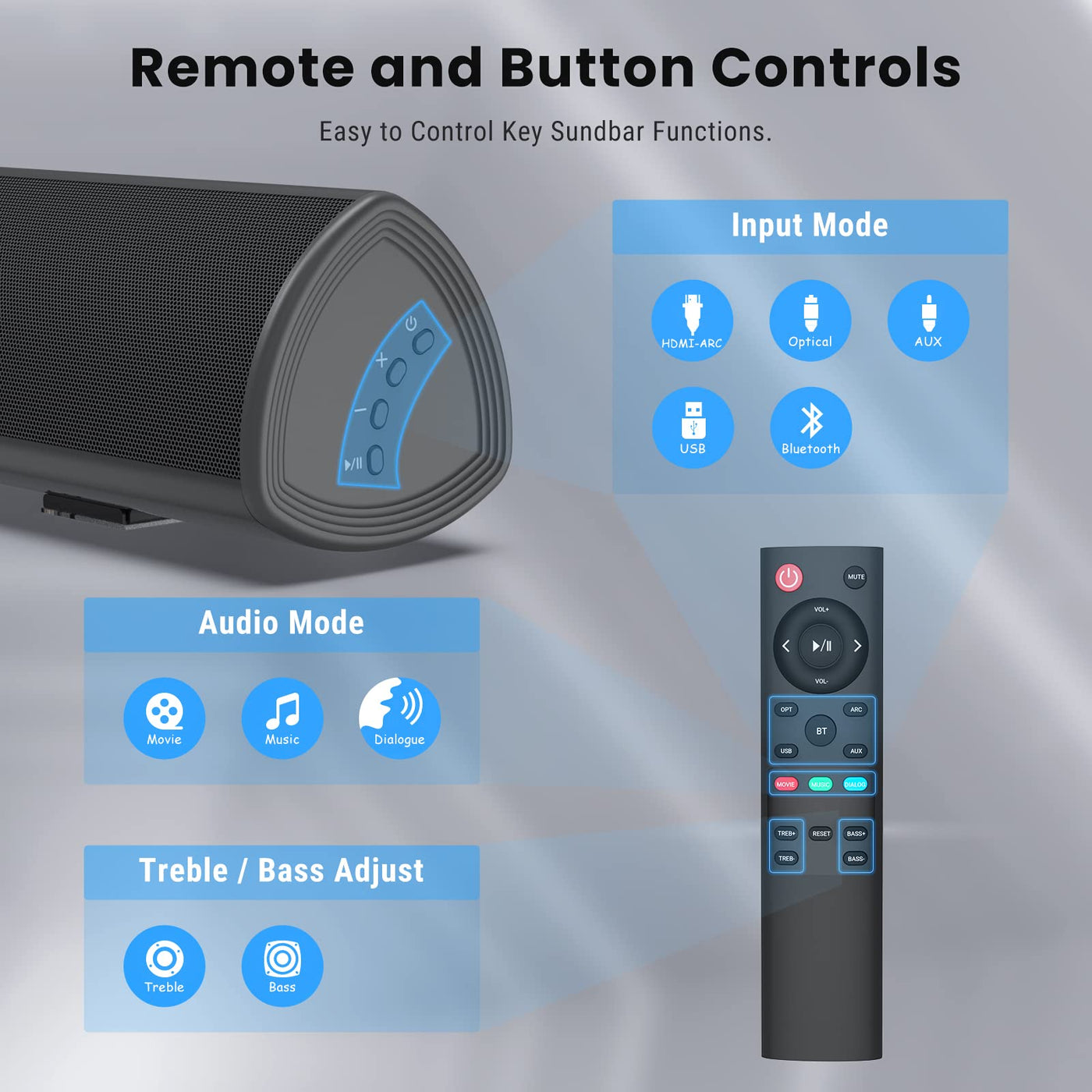 Sound Bar, Bestisan 80W Home Theater Soundbar System With Hdmi-Arc Function, Wired And Wireless Bluetooth 5.0 Audio Speaker (Tre