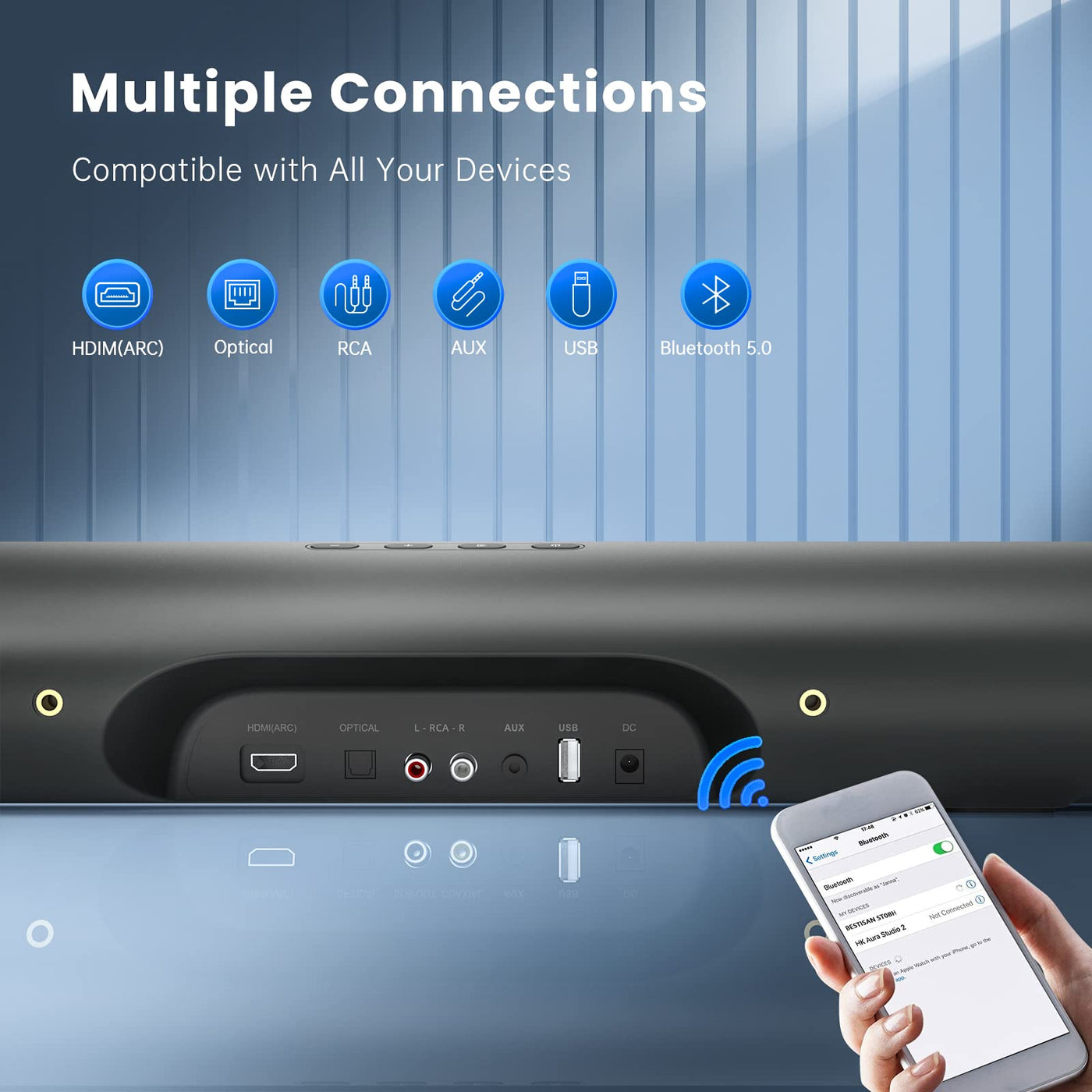 Soundbar, Bestisan 80 Watts Tv Sound Bar Home Theater Speaker With Hdmi, Optical, Rca, Aux Port, Bluetooth 5.0, Movie/Music/Dial