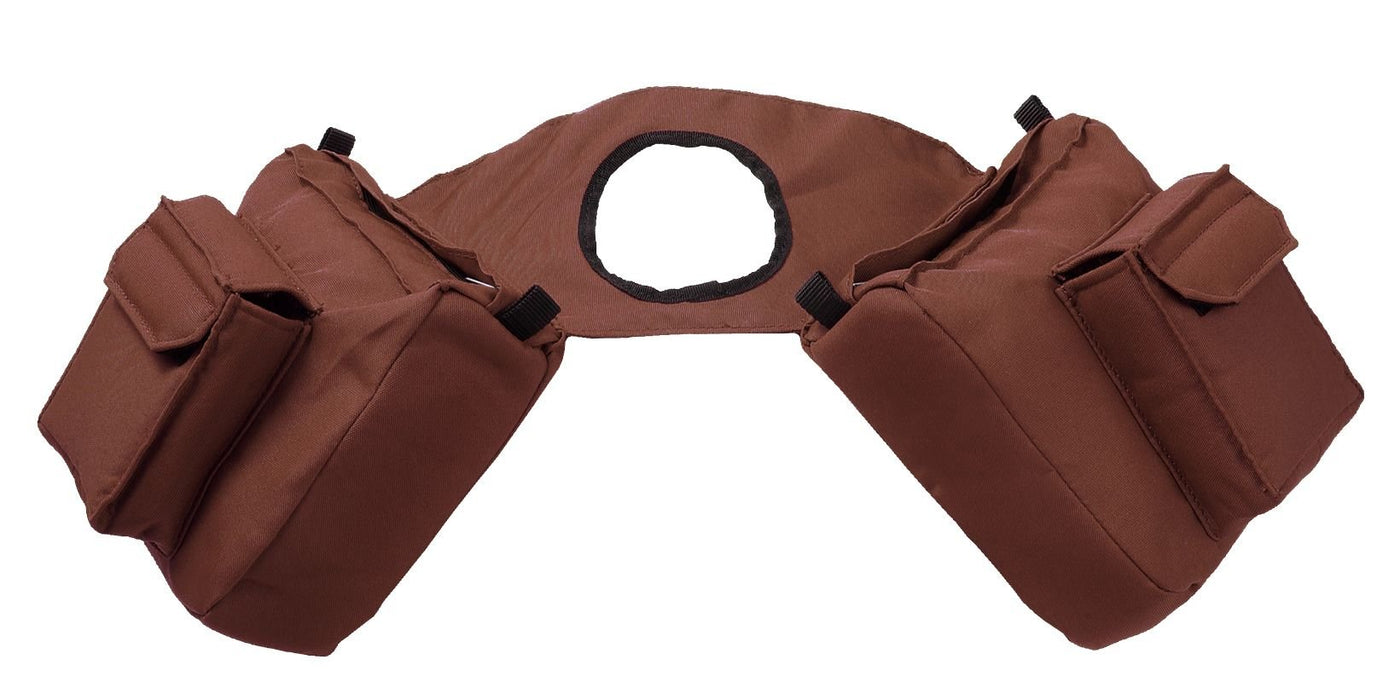 Heavy Denier Nylon Horn Bag. Two 8 X 8 X 3 Deep Pockets With Zipper Closure. Two 4 1/2 X 5 X 1 1/2 Deep Pockets With Quick Grip Closures.