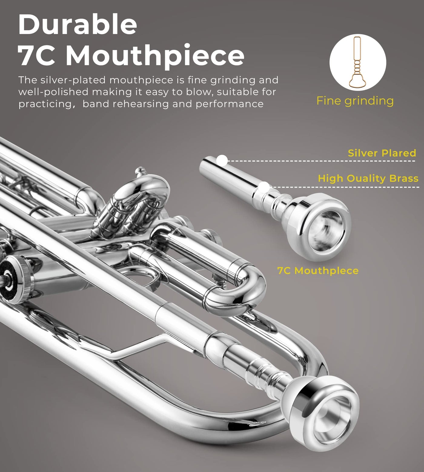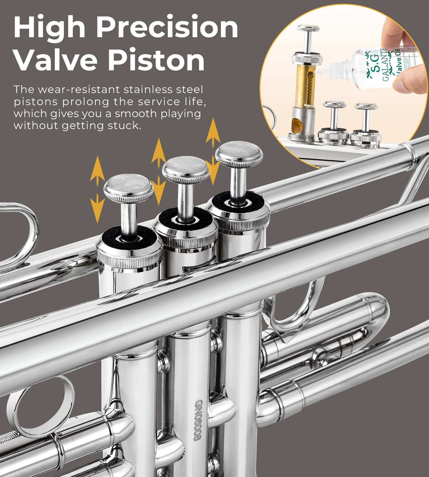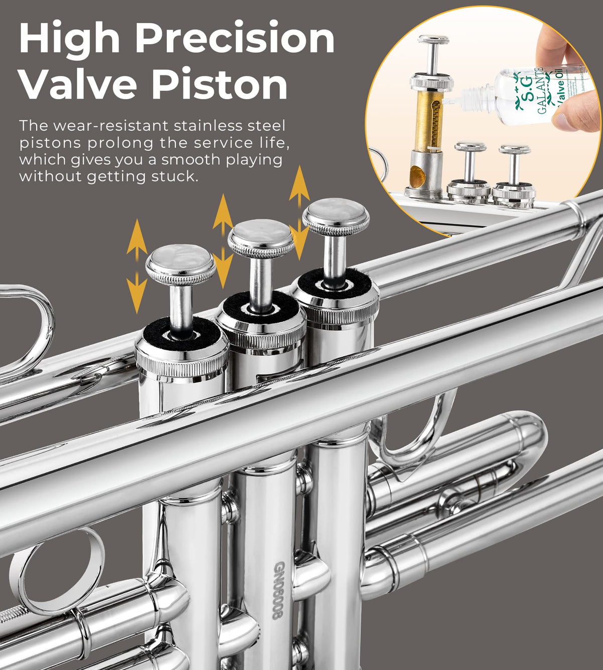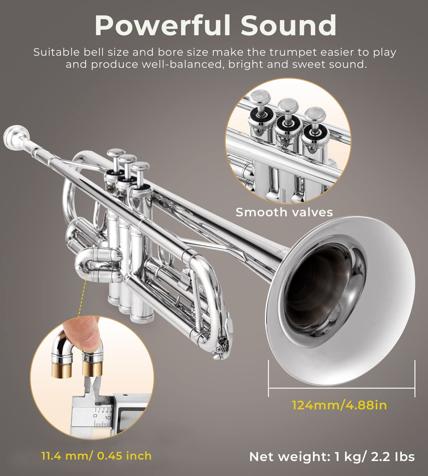 Trumpet, Bb Standard Trumpet Brass Silver Student Trumpet Instrument For School Band Orchestra Beginners Adults With Hard Case,
