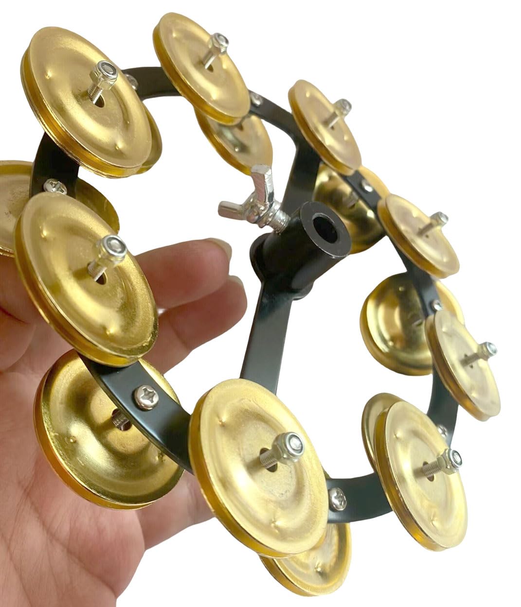 Description: Hi-Hat Mountable Tambourine. Nickel-Plated Steel Alloy Jingles Produce A Bright Sound. Equipped With Wink Screw For Proper Height Adjustment. 8 Pairs Of Nickel Plated Steel Jingles For Bright, High-Projecting Sound. Durable Steel Construction, Durable And Can Be Used For A Long Time. Specifications: Color: Gold Material: Stainless Steel Total Size:1.4 X 6.5( H X Od) Mounting Size: 6-8Mm Weight: Approx. 120G Quantity: 1 X Hihat Tambourine