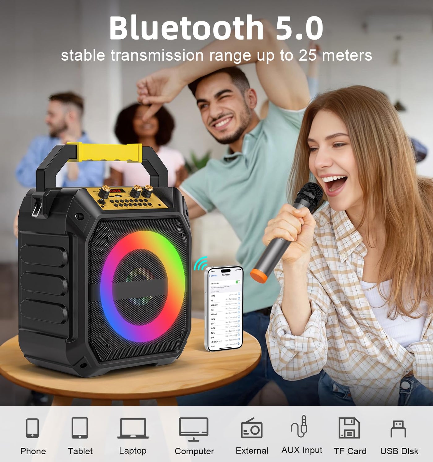 Victress Karaoke Machine With 2 Wireless Microphones, Portable Bluetooth Speaker For Adults & Kids With Strobe Lights,Karaoke Sp