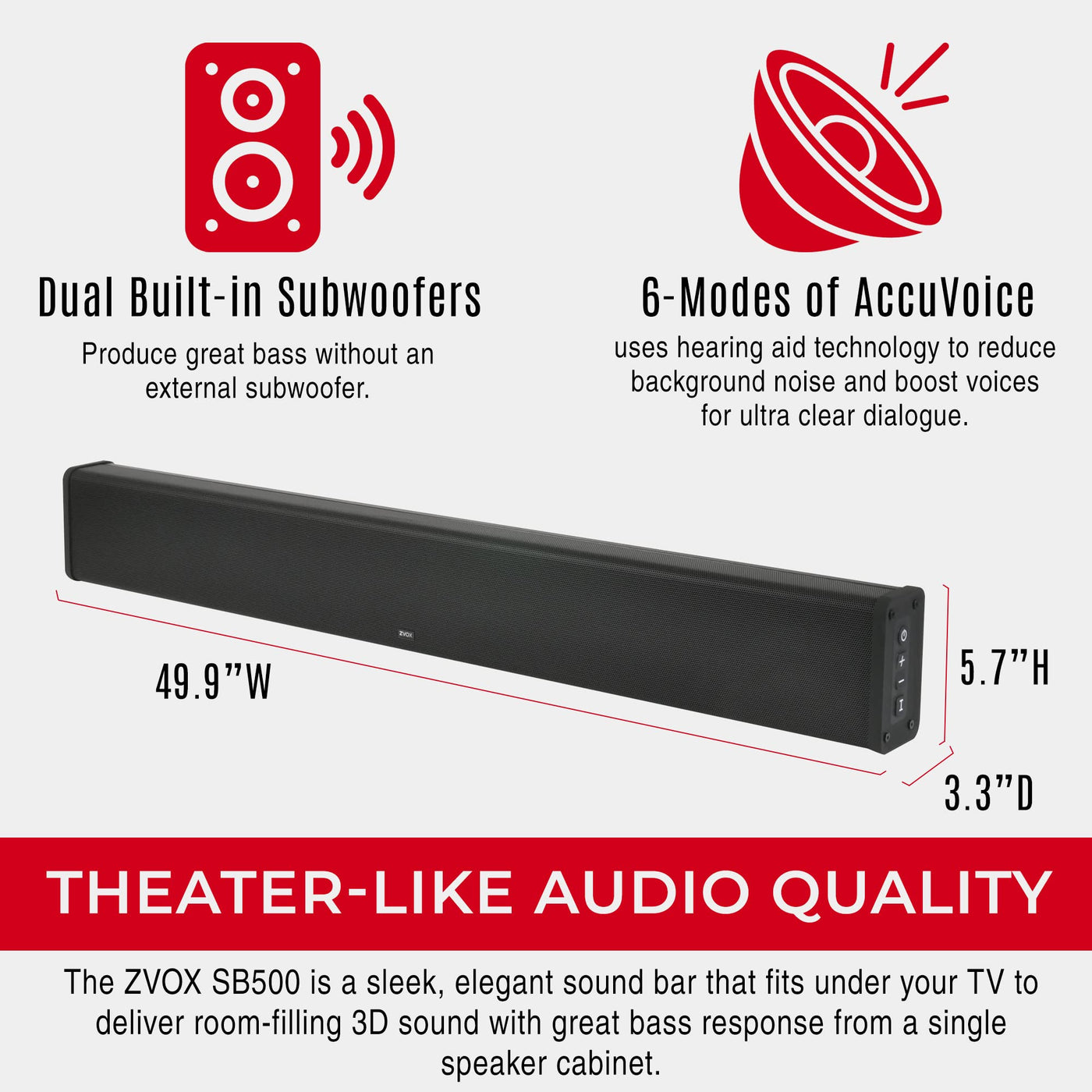 Zvox Sb500 Soundbar For Tv, Home Speaker Bar Works With 50 To 90 Tvs, Soundbar With Subwoofer Built-In, 6 Modes Accuvoice Dialog