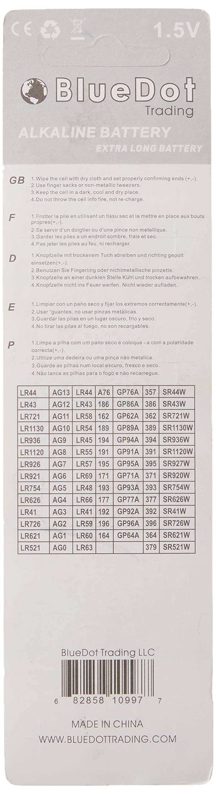 Bluedot Trading Ag9, Sr45, Sg9, Lr45 Alkaline Button Cell Batteries Ideal For Hearing Aids, Watches, Calculators, Thermometer, T