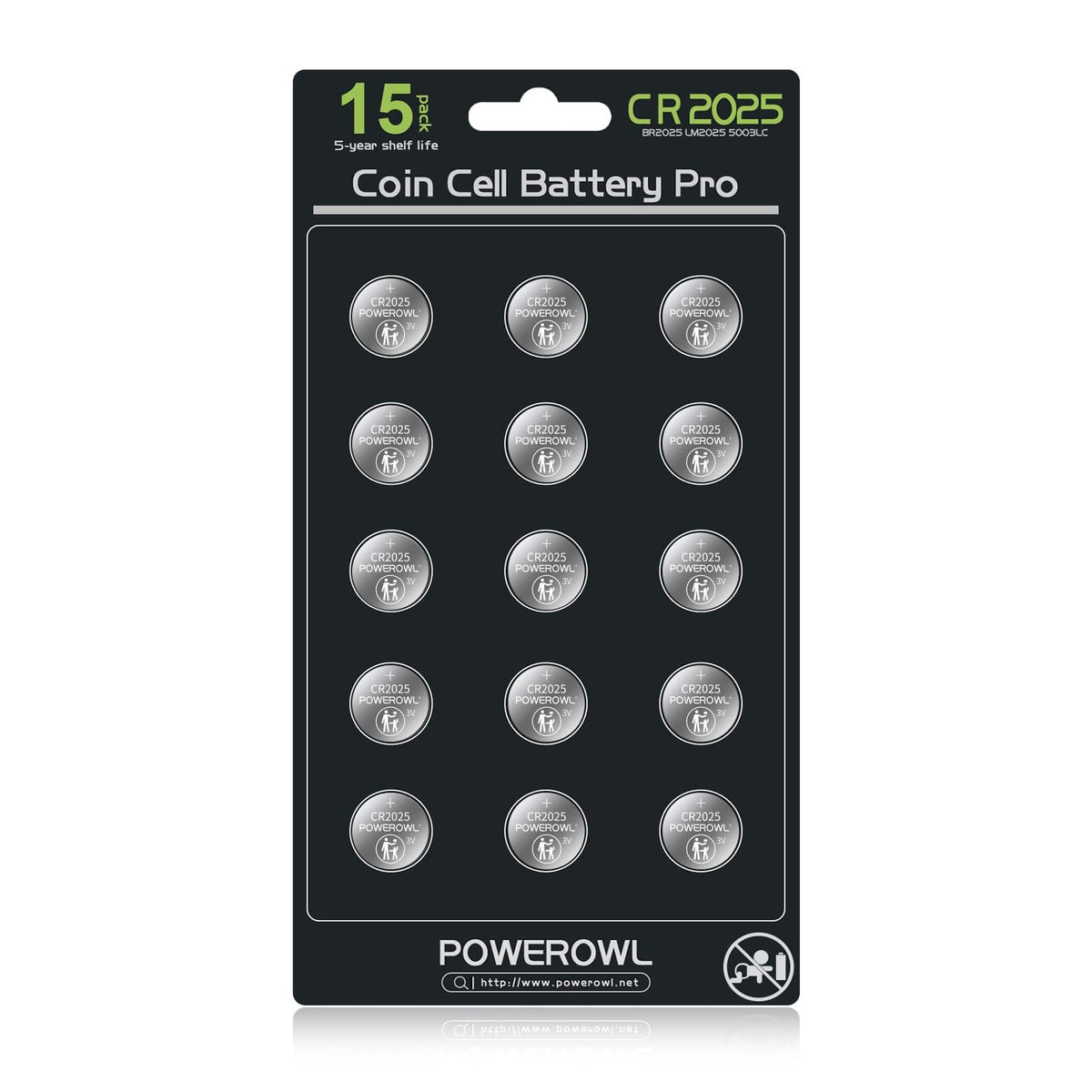 Powerowl High Capacity Cr2025 Battery (15 Pack) 2025 3V Lithium Batteries, 10 Years Leak Free