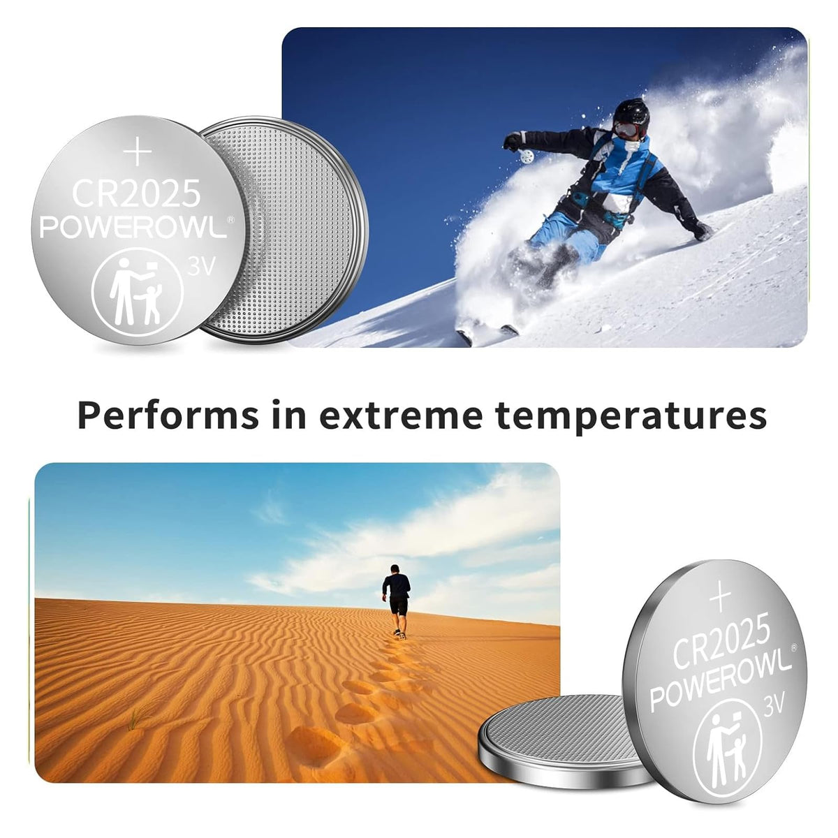 Q: Are POWEROWL CR2025 batteries safe to use?A: Yes, POWEROWL CR2025 batteries are safe to use when handled properly. However, it is important to note that they contain lithium metal, so they should be kept away from heat and disposed of in accordance with local regulations.