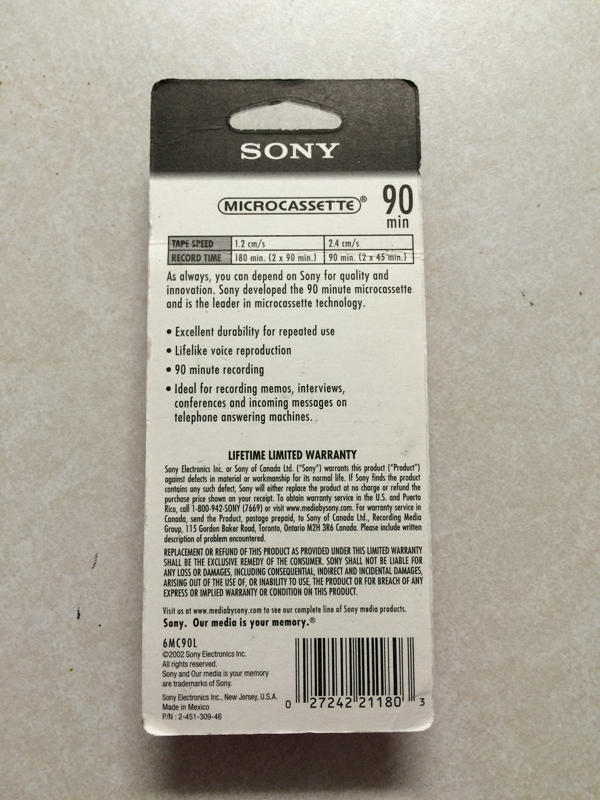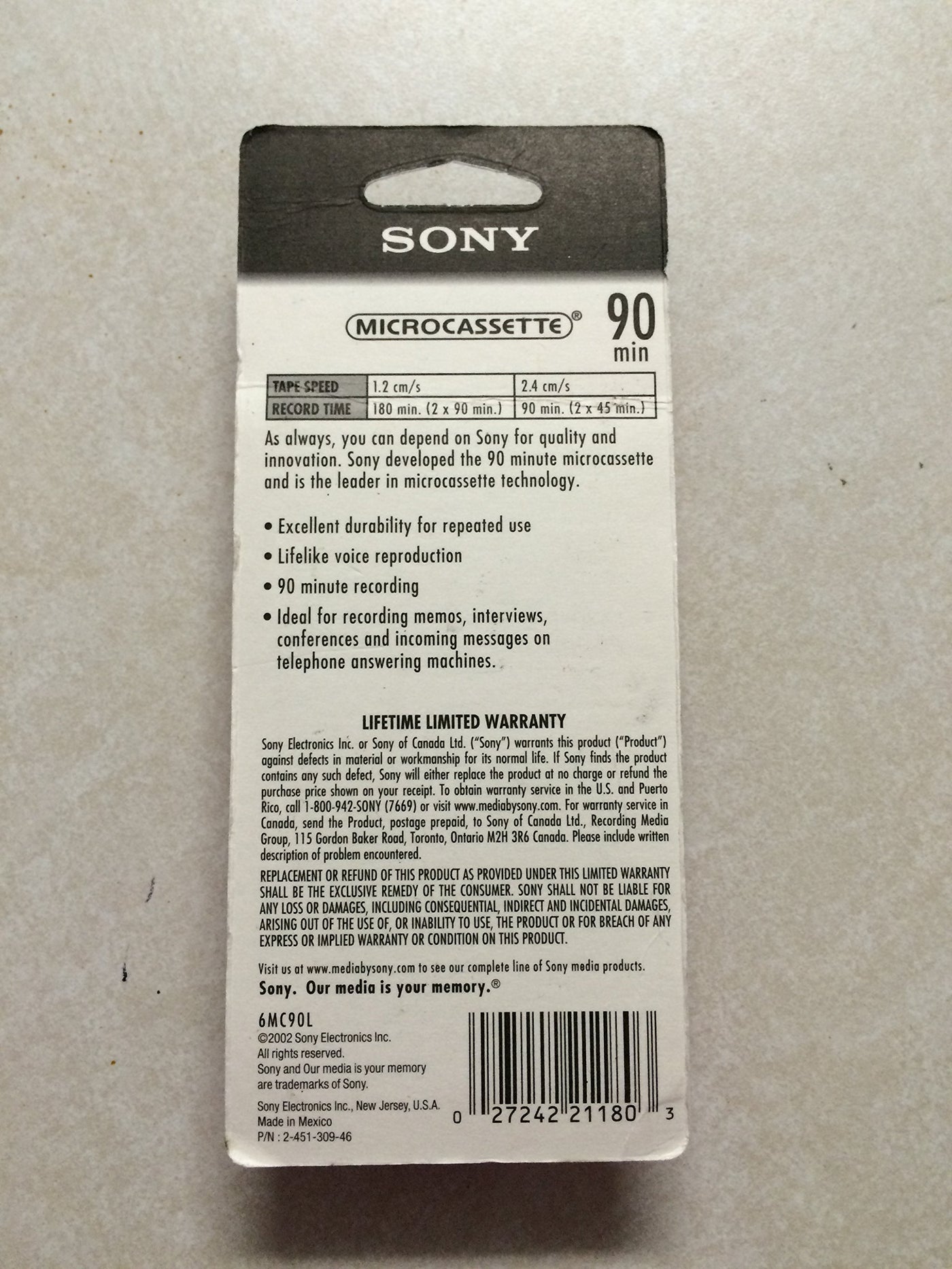Audio and Dictation Micro Cassette, 90 Minutes (45 x 2), Six per Pack / A dictation microcassette that provides clear voice recording and high sound quality. Cassette Type: Audio; Cassette Size: Micro; Grade/Quality: NA; Maximum Recording Time: 90 Minutes (45 x 2).