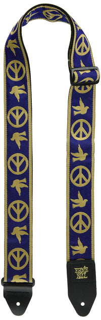 Ernie Ball Jacquard Guitar Strap, Navy Blue And Beige Peace Love Dove (P04699)