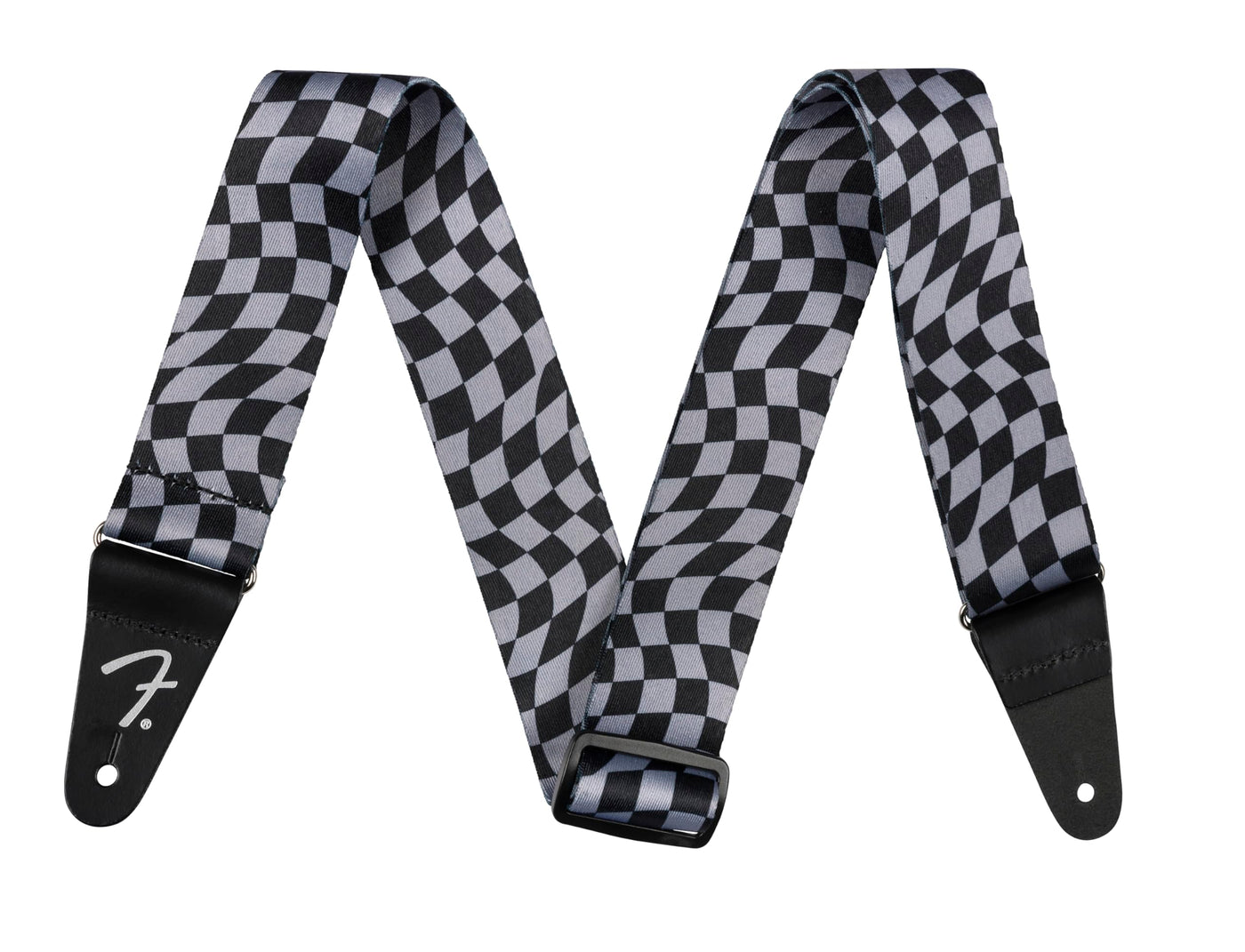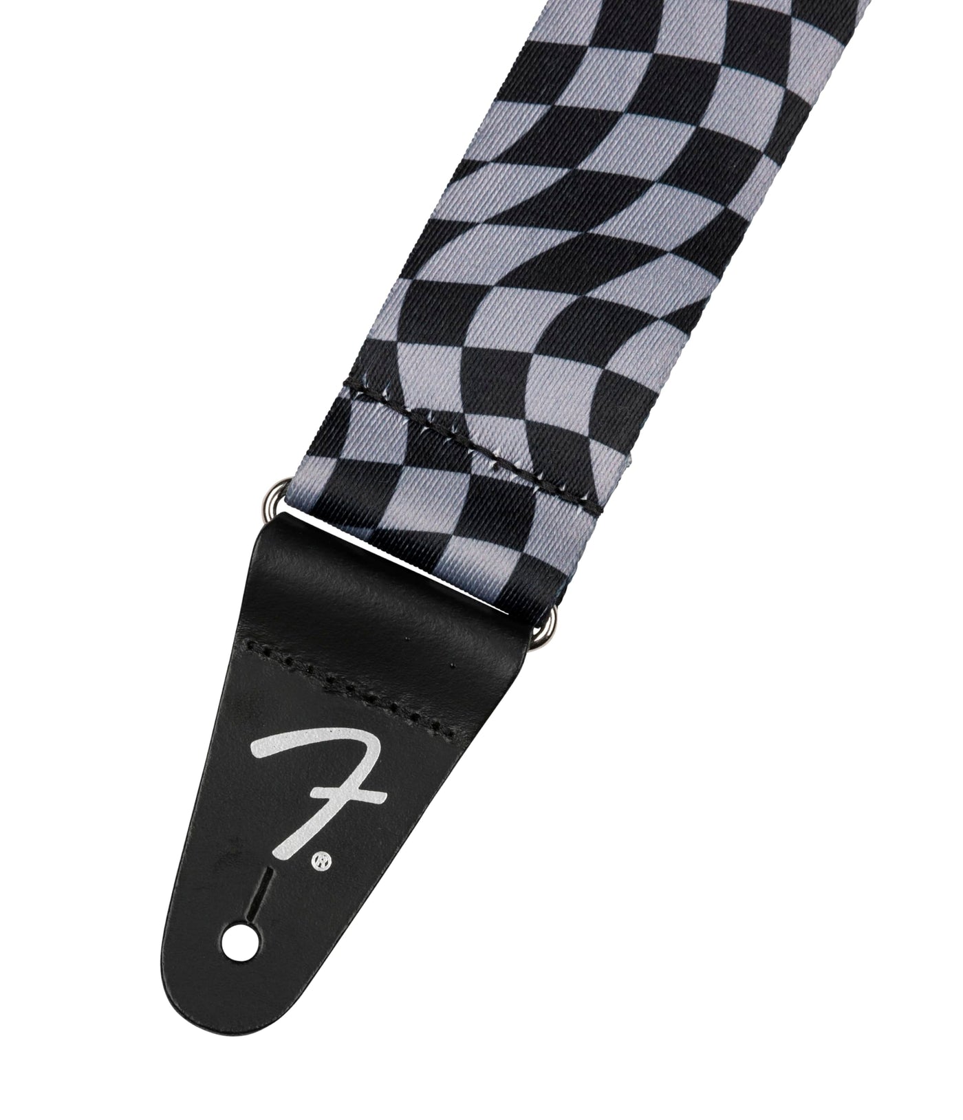 Fender Wavy Checkerboard Polyester Guitar Strap, Adjustable From 34-59, Leather Ends, Gray