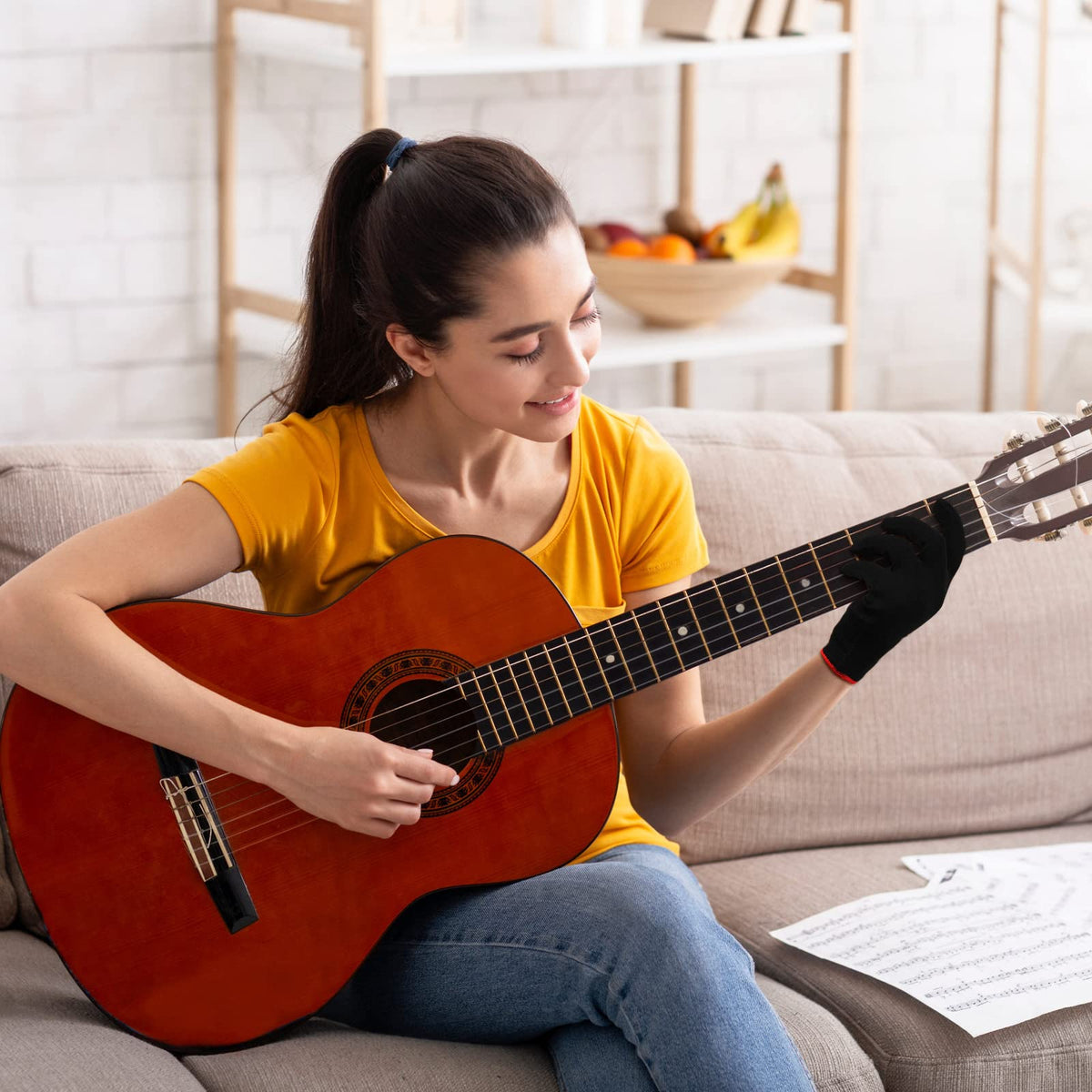 Features: A Novel Present: You Can Send The Guitar Glove As A Gift To Your Friends, Family Members, Loved Ones, Classmates, And Other Instrumentalists They Will Be Happy To Receive This Useful And Thoughtful Gift On Birthdays Satisfactory Wearing Experience: These Guitar Finger Protectors Are Portable And Compact, They Are Not Too Tight Or Too Loose, Nice To Wrap Around Your Palm And Fit Your Fingers, Easy To Wear, And Hard To Fall Off Specifications: Material: Nylon Main Color: Black Size: Approx 175 Cm 689 Inches In Length, And 8 Cm 315 Inches In Palm Width Package Includes: 4 X Guitar Gloves Notes: Manual Measurement, Please Allow Slight Errors On Size The Color May Exist A Slight Difference Due To Different Screen Displays