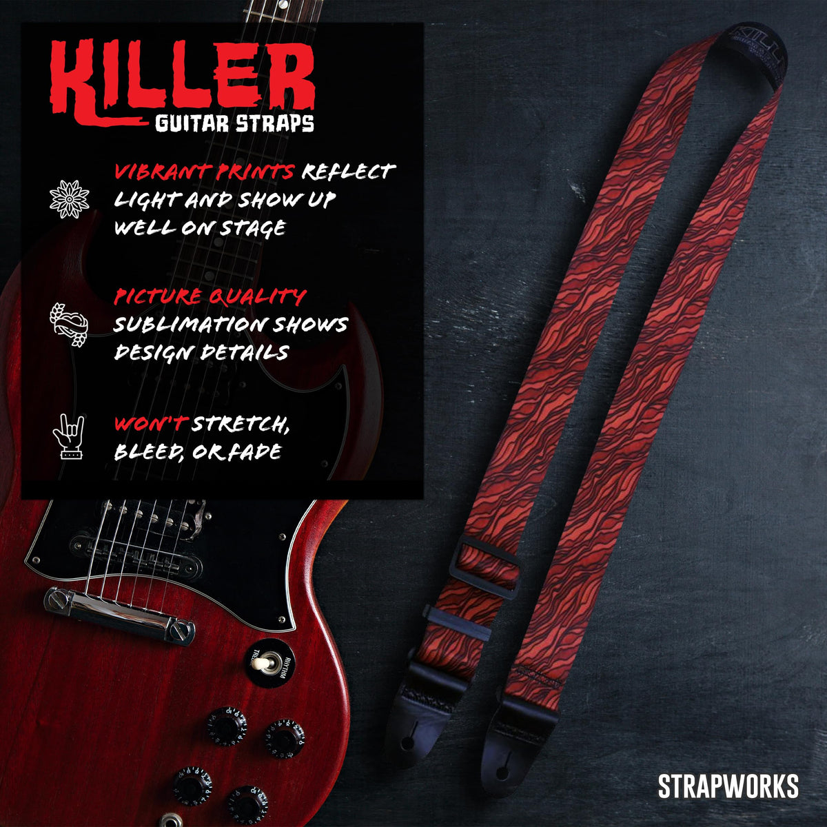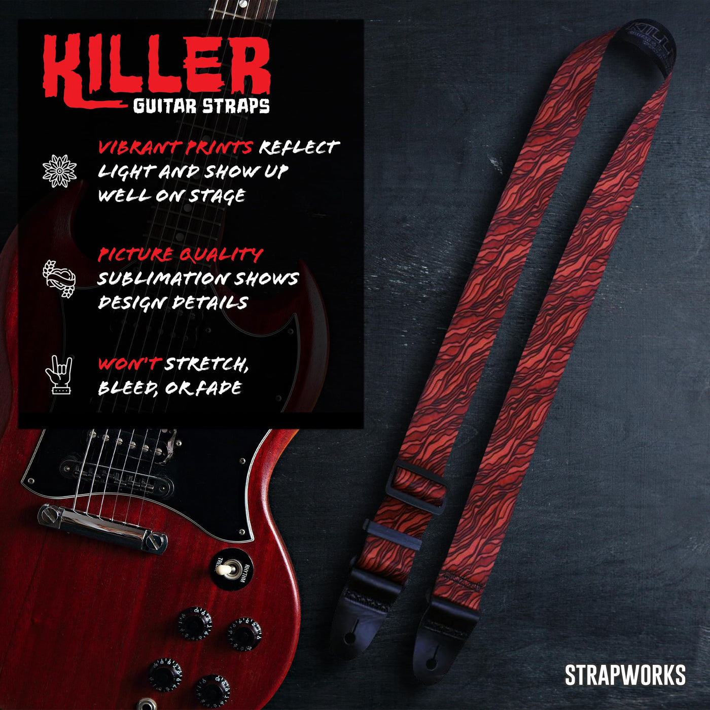 Print Guitar Strap -These Fun, Stylish Guitar Straps Are A Favorite Among Electric And Acoustic Guitar Players.They Are Great For Banjos Too!With Many Styles, Designs And Colors To Choose From, There Is A Guitar Strap For Every Musicians Taste.Each Guitar Strap Measures 2 Inches Wide (Great For Shoulder Comfort) And 5 Feet Long.The Strap Is Easily Adjustable, So You Wont Have Any Issue Finding The Perfect Length. Superior Design - The Guitar Strap Is Made From Picture Quality Polyester That Wont Stretch, Bleed, Or Fade.The Elegant Genuine Black Leather Ends Are Suitable For Embossing Or Stamping.